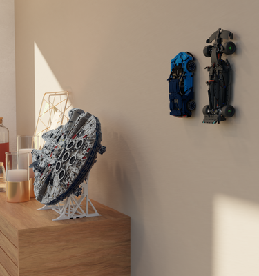 Soportes de pared, soportes y anclajes que hacen que tus modelos LEGO destaquen. Diseñados para todo, desde Speed Champions hasta naves espaciales de Star Wars.