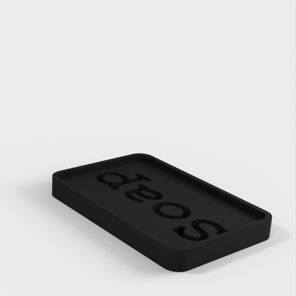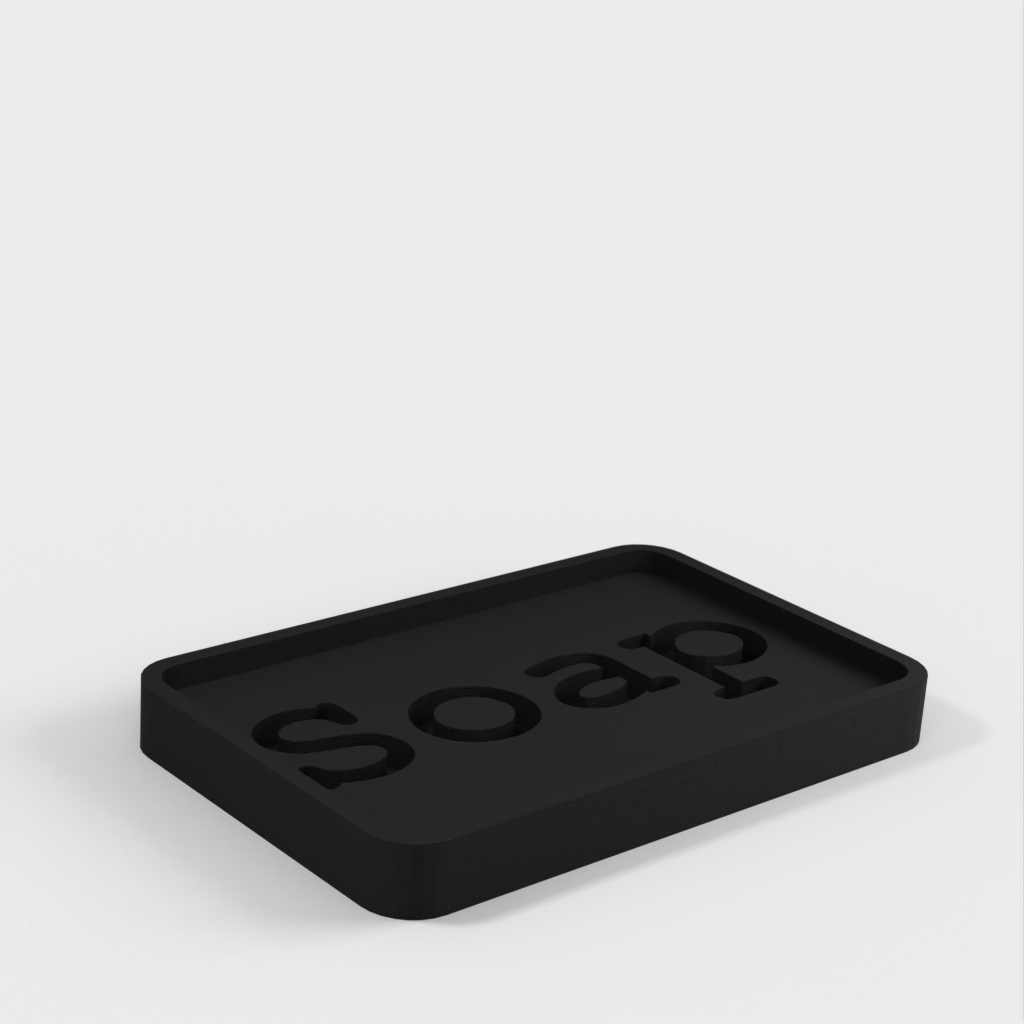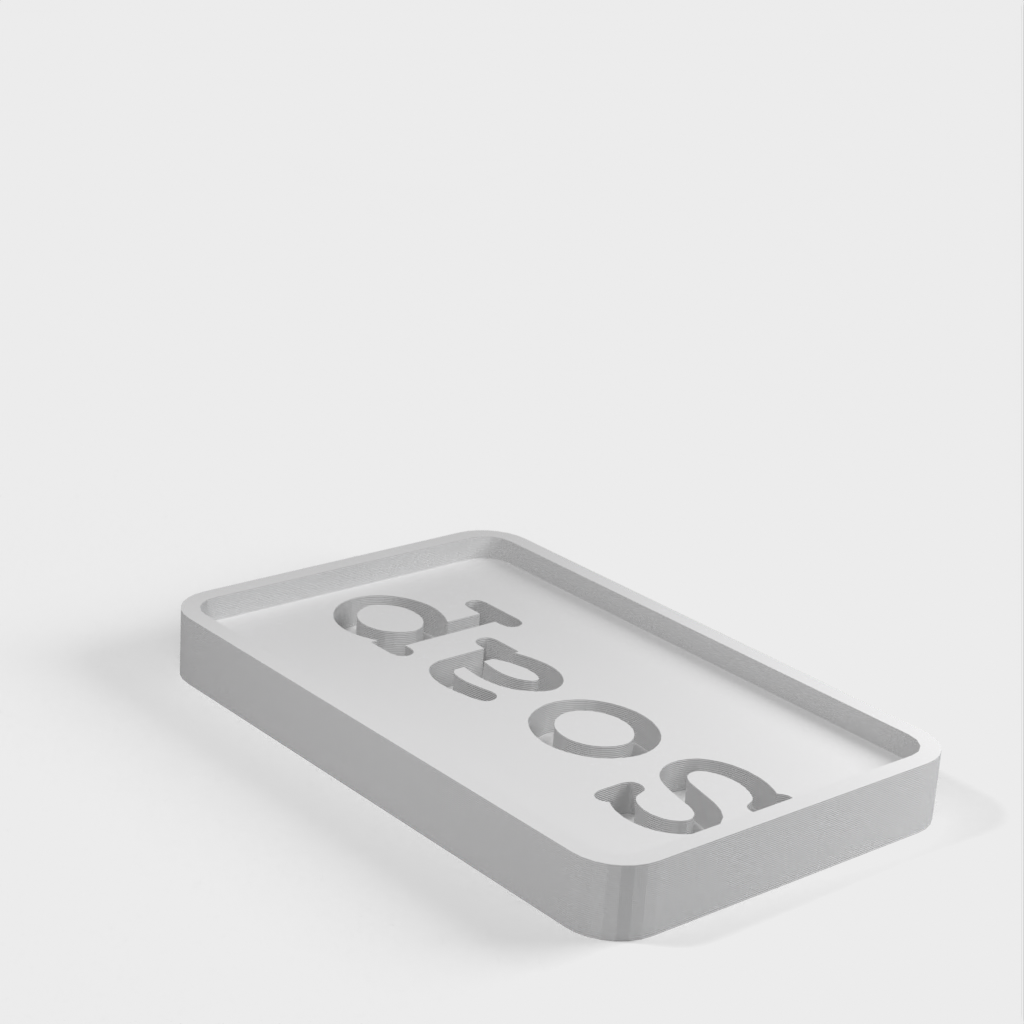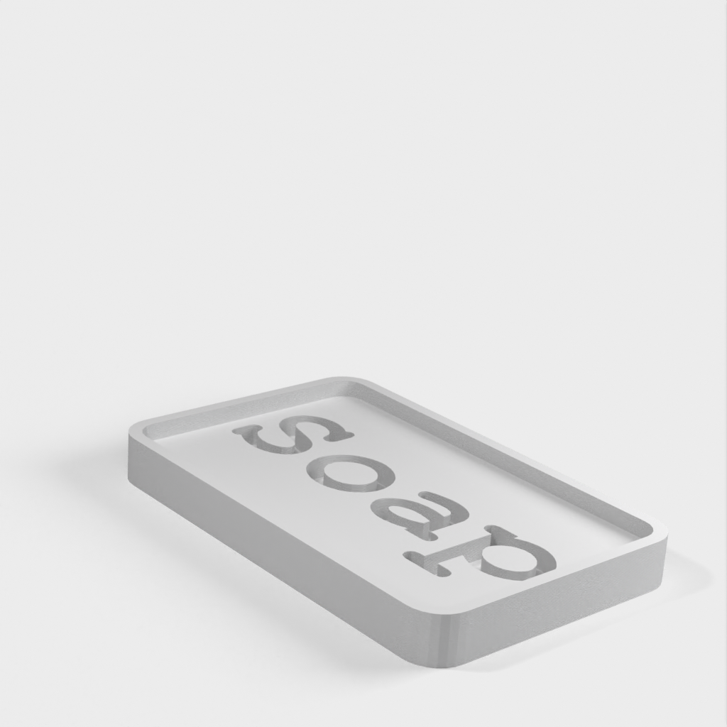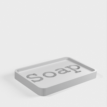 Una pastilla de jabón para el hogar con las instrucciones de uso incrustadas en la propia pastilla. Esta jabonera mantiene el jabón seco y organizado en el baño o la cocina.