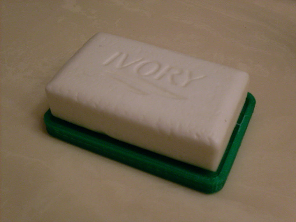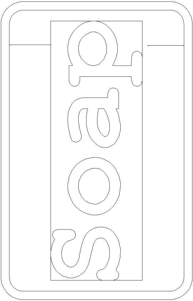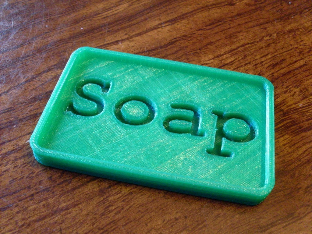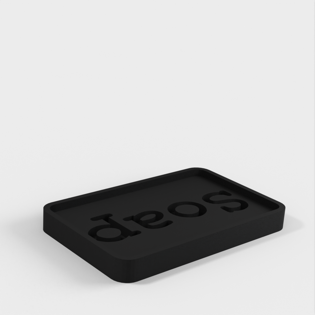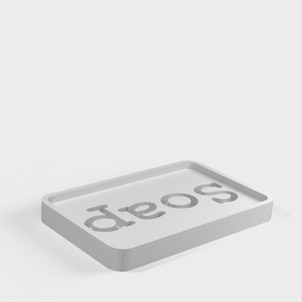 Una pastilla de jabón para el hogar con las instrucciones de uso incrustadas en la propia pastilla. Esta jabonera mantiene el jabón seco y organizado en el baño o la cocina.