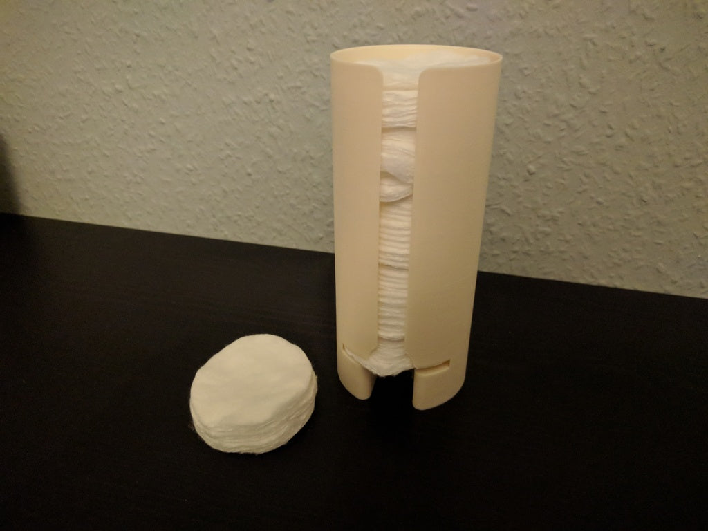 Este es un práctico dispensador de almohadillas de algodón para el baño que se puede montar fácilmente tanto en la pared como en el interior del armario. Al mantener las almohadillas de algodón bien organizadas y fuera de la superficie, ayuda a ahorrar un valioso espacio de almacenamiento en el cajón o armario. Una solución ideal para un baño más ordenado y bien organizado. Impreso en 3D.