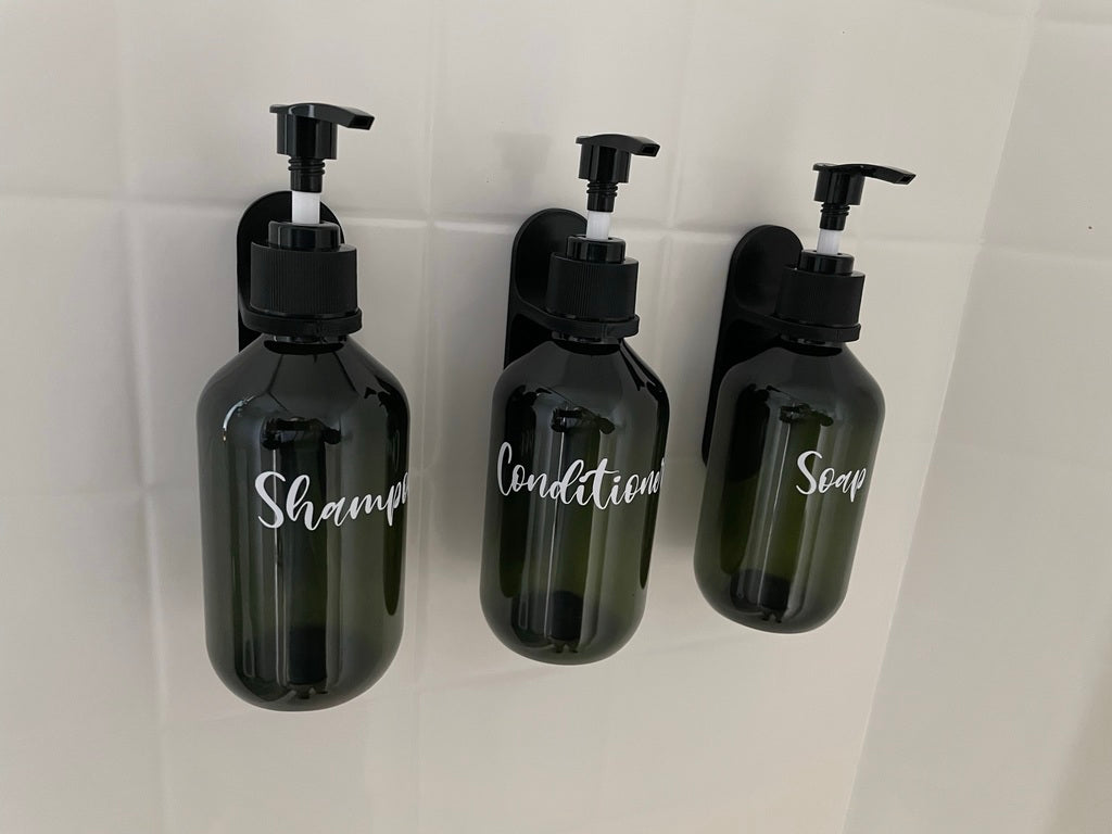 Este dispensador de jabón de pared para baño está diseñado para contener jabón, champú, loción, etc. en cualquier botella con un diámetro superior máximo de 24,5 mm, incluida la rosca de la botella. Se adapta perfectamente a estas económicas botellas con bomba de 10 oz de Amazon. Se puede fijar simplemente a la pared del baño o al espejo con cinta 3M resistente al agua después de preparar la superficie con un limpiador IPA. (no incluido)