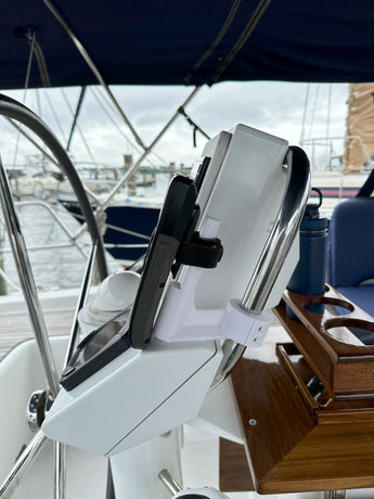Este soporte está especialmente diseñado para proporcionar un lugar seguro y de fácil acceso para su teléfono VHF en el pasamanos de bitácora de un Beneteau 37. Asegura que el teléfono esté siempre al alcance cuando lo necesite, mientras que el pasamanos permanece libre para que pueda agarrarlo fácilmente.