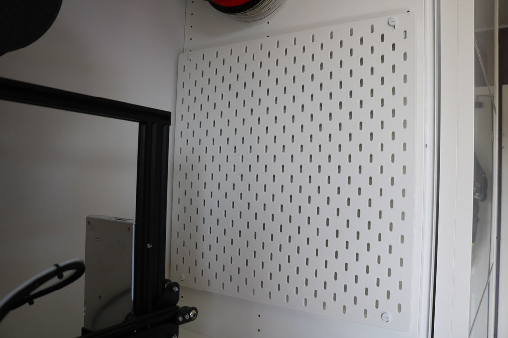Montaje en pared para colgar un Ikea Skådis en un armario Pax usando los orificios originales para tornillos.