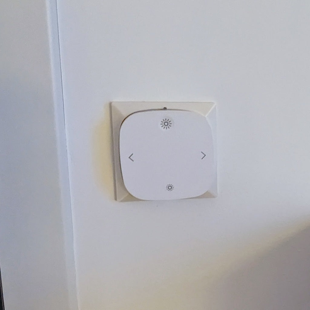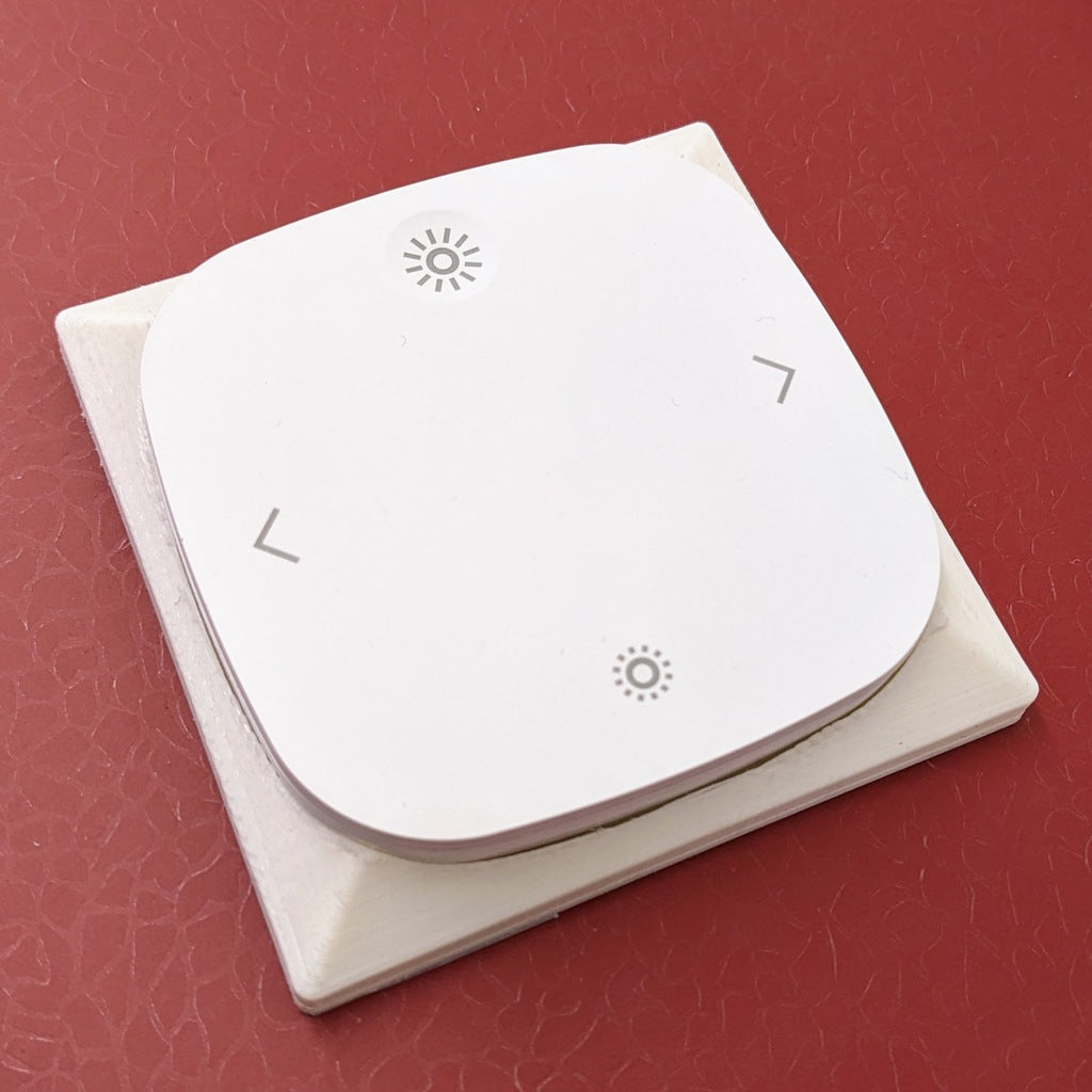 STYRBAR Væg Mount es un soporte para el mando a distancia STYRBAR smart home de IKEA, diseñado para sustituir fácilmente la ubicación normal del interruptor de la luz. Este modelo tiene orificios para montarlo en una 'Unterputzdose' estándar (~caja integrada). Y debido a que nuestro está torcido en la pared, los agujeros verticales son ranuras.