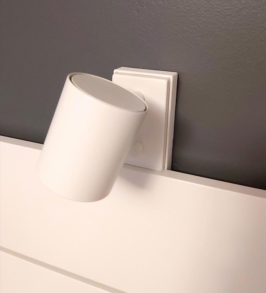 Este es un soporte de fricción simple para la lámpara Nymane de Ikea que se fija a su cabecera Nordli. Puedes utilizar un poco de cinta adhesiva de doble cara si la lámpara no encaja bien en la carcasa. Luego simplemente lo deslizas entre la cabecera y la pared. Usamos dos de ellos y se mantienen en su lugar perfectamente. Había planeado hacer un poco más, pero lo imprimí para probar el ajuste y todo funcionó perfectamente, así que imprimí otro y di por terminado el proyecto.