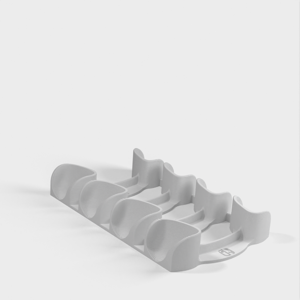 Este soporte para mandos Pro de Nintendo Switch está diseñado para funcionar como soporte horizontal para 4 mandos Pro de Nintendo Switch. Cabe fácilmente en un cajón y mantiene los mandos organizados y fáciles de encontrar. Este soporte es imprescindible para todos los entusiastas de los videojuegos que quieran mantener su zona de juego ordenada y organizada.