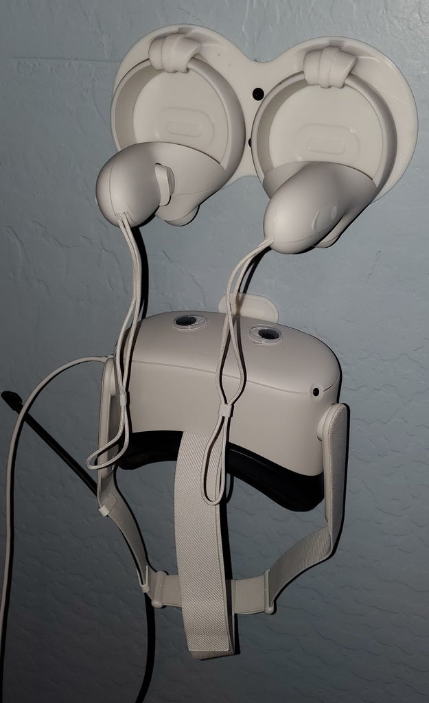- Komplet sæt, der inkluderer ophæng til både headsettet og de to controllere.
