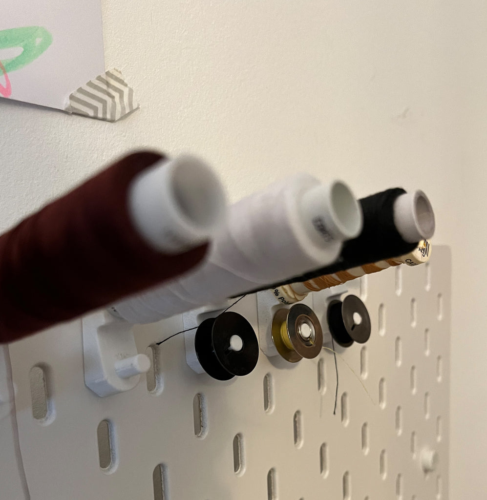 El soporte para hilo de coser IKEA SKADIS es la solución ideal para realizar un seguimiento de sus carretes de hilo. Con este soporte, puede organizar fácilmente carretes de hilo grandes y pequeños, lo que le ayuda a evitar confusiones de colores, como el azul marino y el negro. El soporte está diseñado para encajar perfectamente en su sistema organizador IKEA SKADIS, lo que facilita la creación de un espacio de trabajo ordenado y funcional para su artesanía.