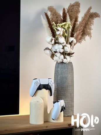 Este soporte ofrece una forma moderna de mantener ordenado tu espacio de juegos. Está diseñado para sostener hasta tres mandos, compatible con marcas como PlayStation, Xbox y Switch. Elige entre un acabado liso o pulido que se adapte a tu estilo de decoración. El accesorio garantiza que tus mandos estén organizados y sean fácilmente accesibles.