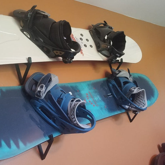 Este soporte de pared para snowboard PriseDenne es fácil de instalar y extraordinariamente resistente. El diseño transfiere la mayor parte del peso al marco, en lugar de ejercer una gran tensión cerca del tornillo, como ocurre con otros diseños. Esto significa que solo requiere un tornillo en un montante de pared. Los dos snowboards que se muestran han estado colgados durante más de un año y, sin embargo, duermo tranquilo debajo de ellos.