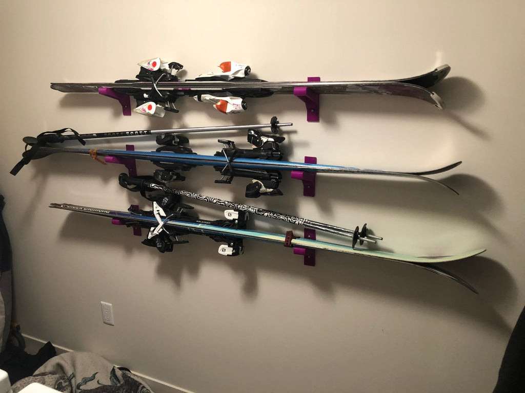 Este soporte de pared es una solución eficaz para guardar los esquíes en la pared. Con este diseño, puede guardar de forma fácil y práctica los esquíes atados de forma segura en la pared. Perfecto para ahorrar espacio y mantener el equipo organizado.