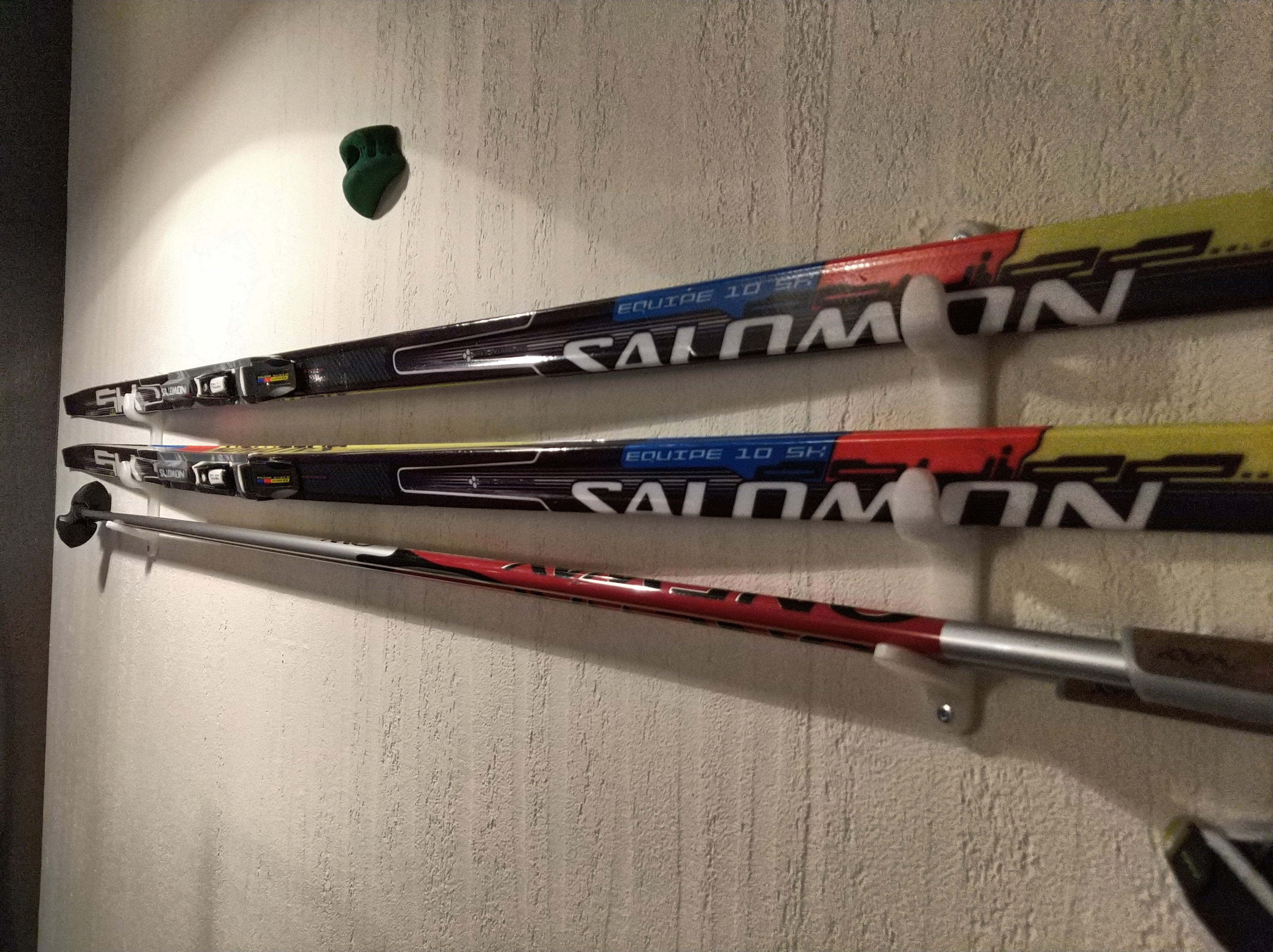 Soporte de pared para esquís y bastones.