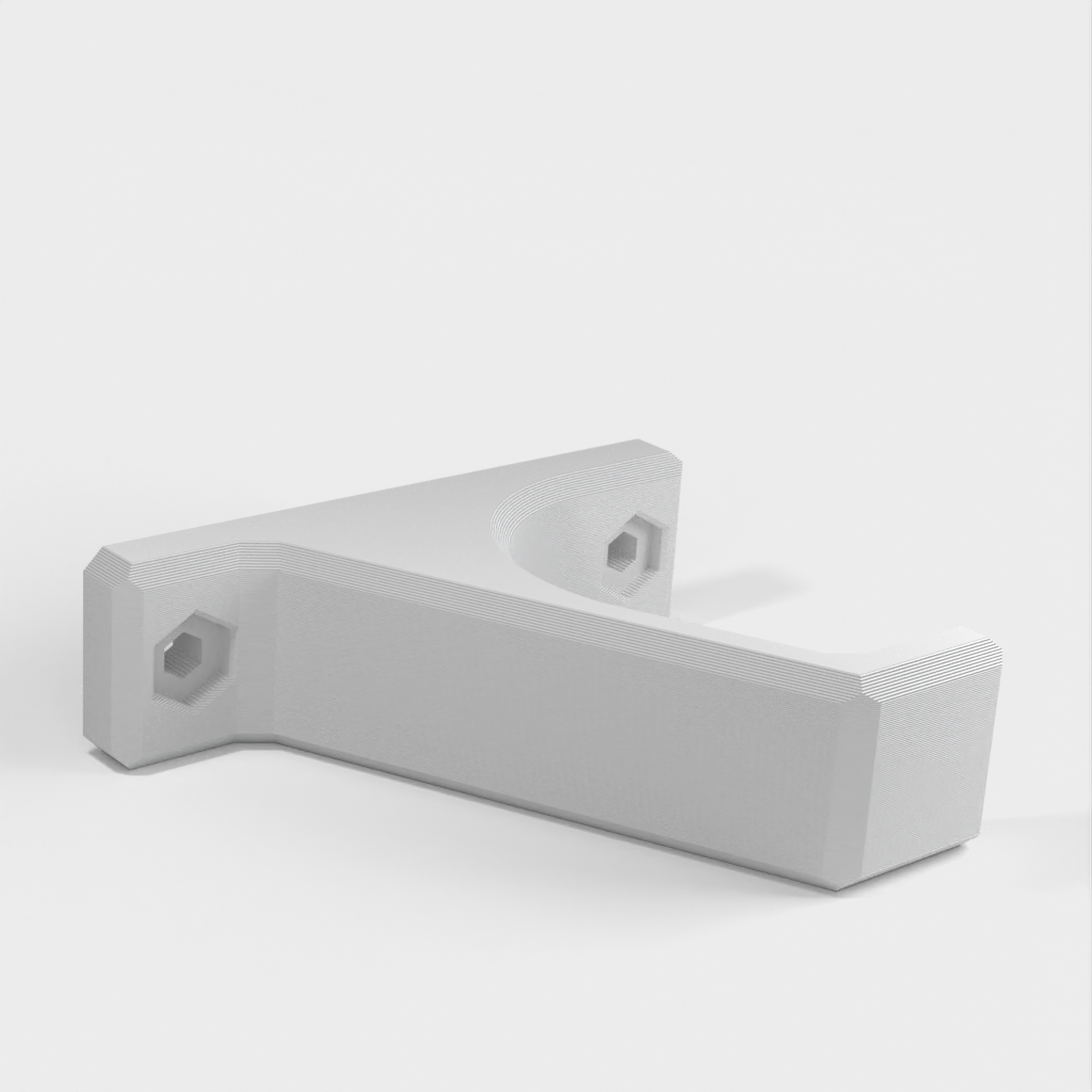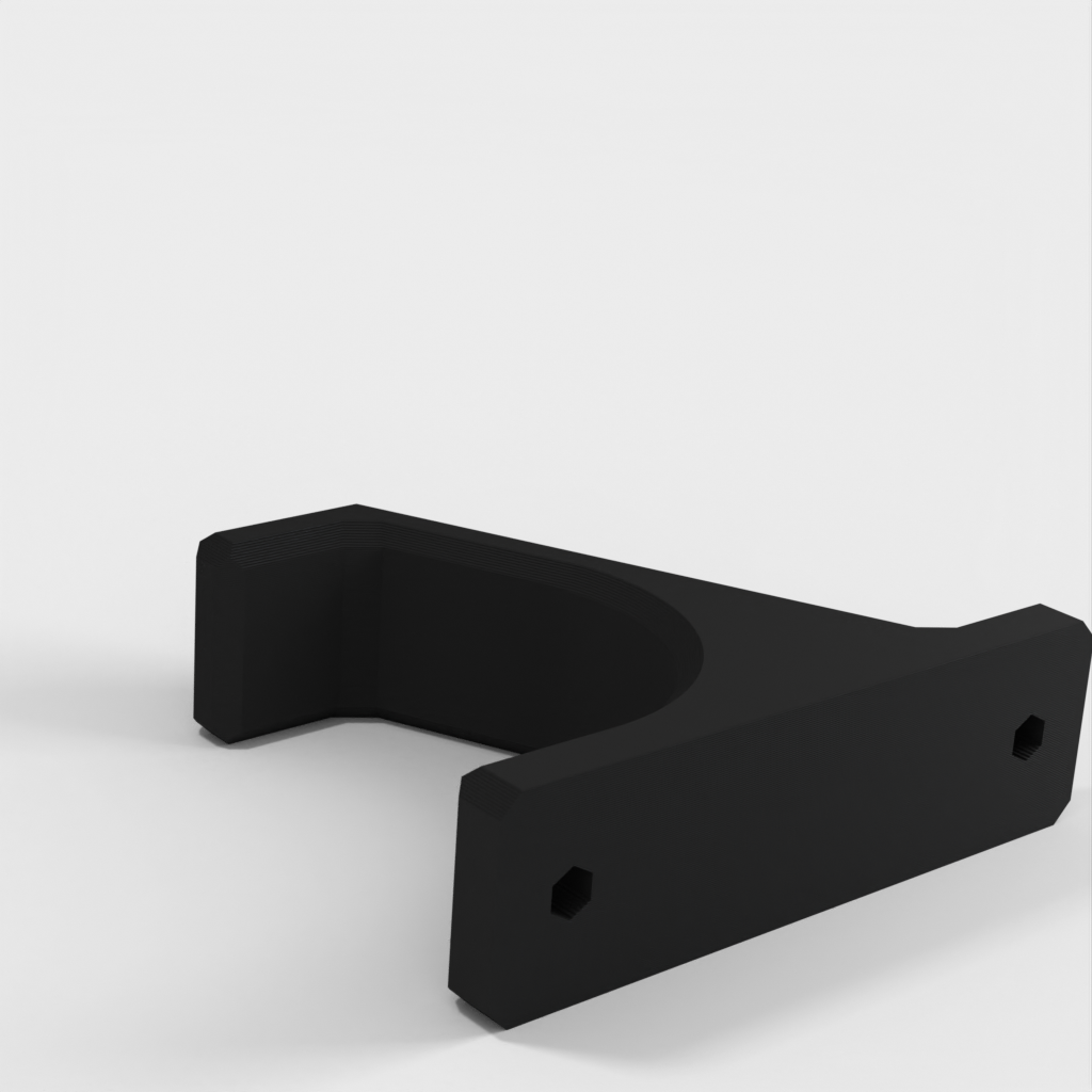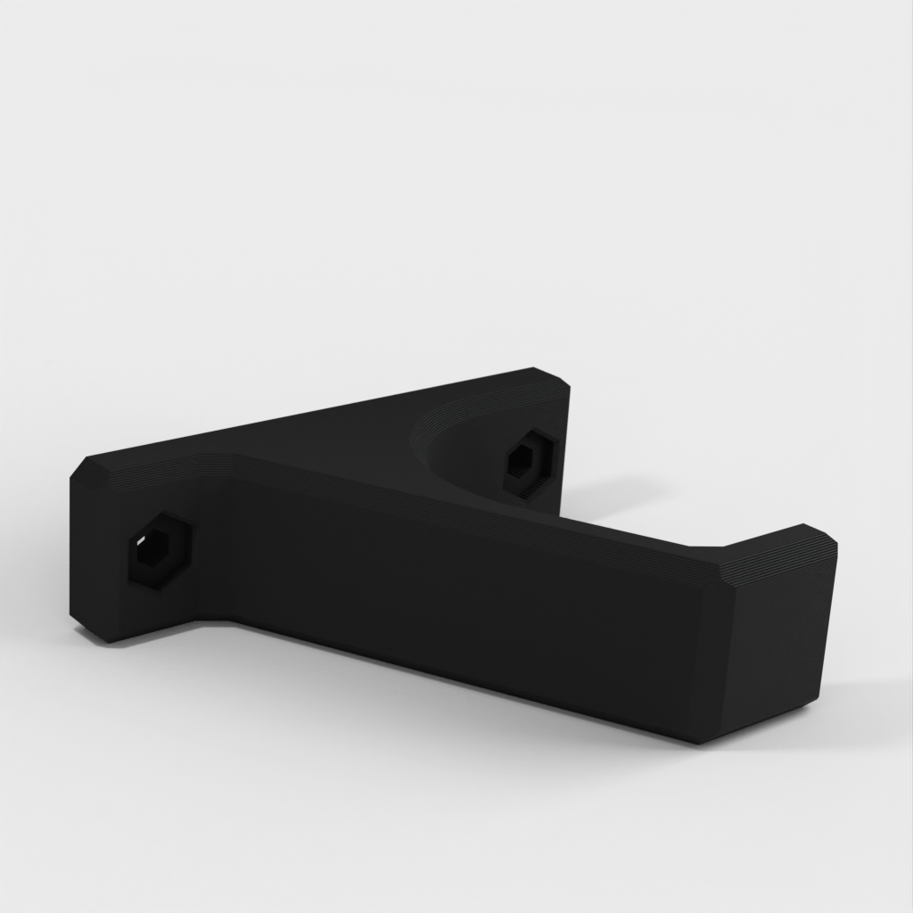 Colgador de casco de bicicleta MTB con un práctico diseño de gancho que se puede montar en la pared para un almacenamiento fácil y seguro de su casco. Los orificios hexagonales para los tornillos garantizan una producción fácil de imprimir y el modelo tiene un espacio empotrado para la cabeza del tornillo, para que no moleste al casco. La distancia entre los orificios de montaje es de 53 mm, lo que se adapta a tornillos de hasta 4 mm de diámetro y cabezas de 8 mm de diámetro y 2 mm de grosor.