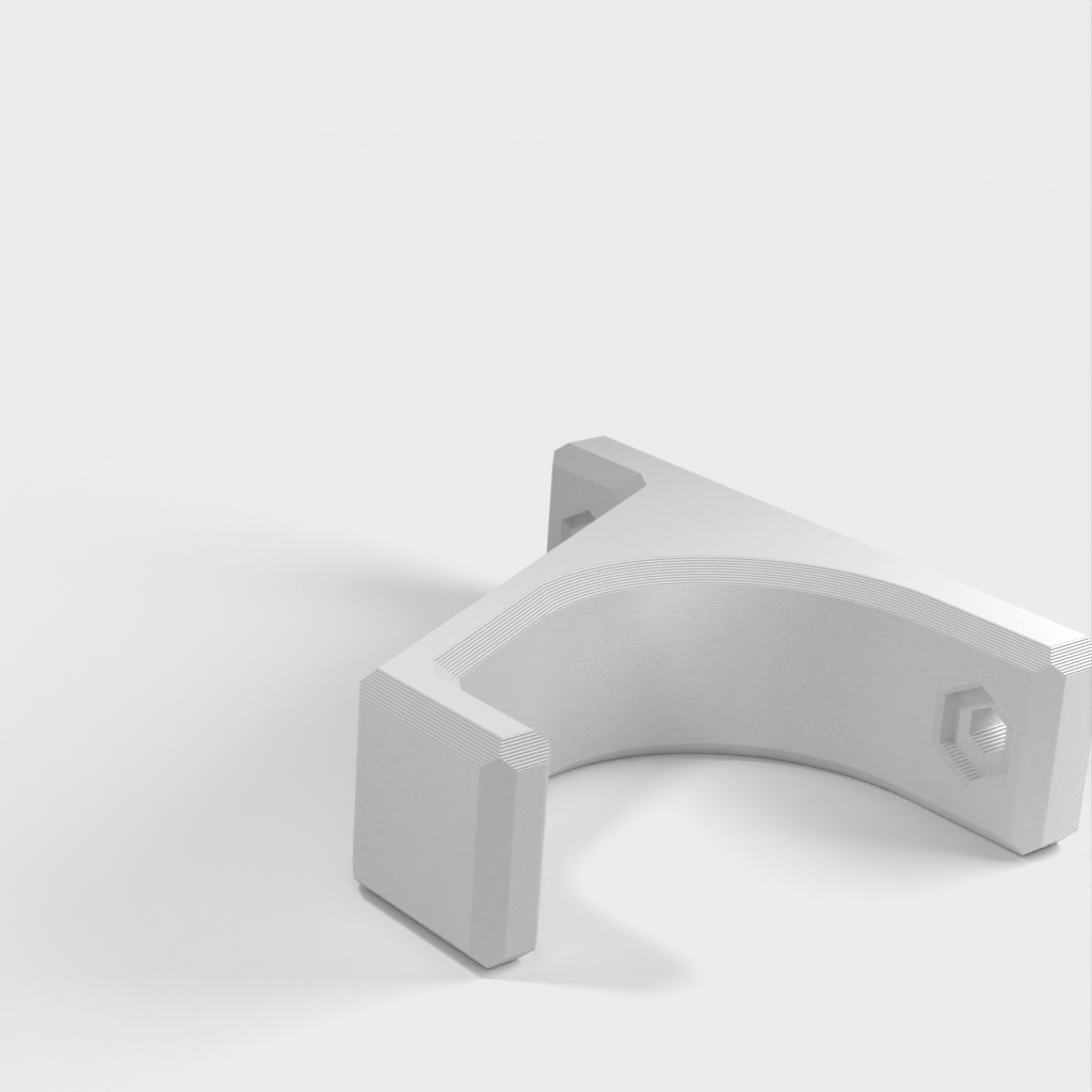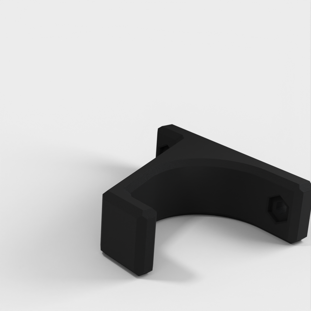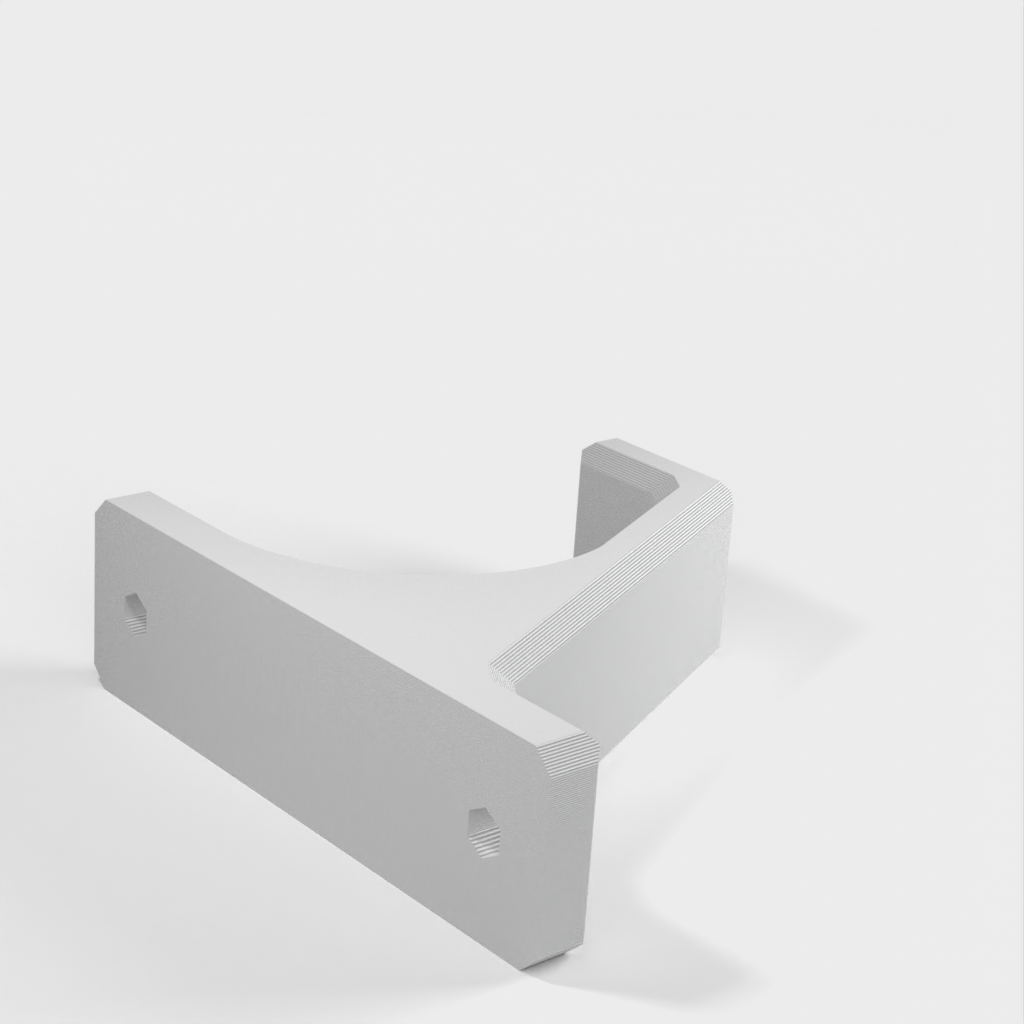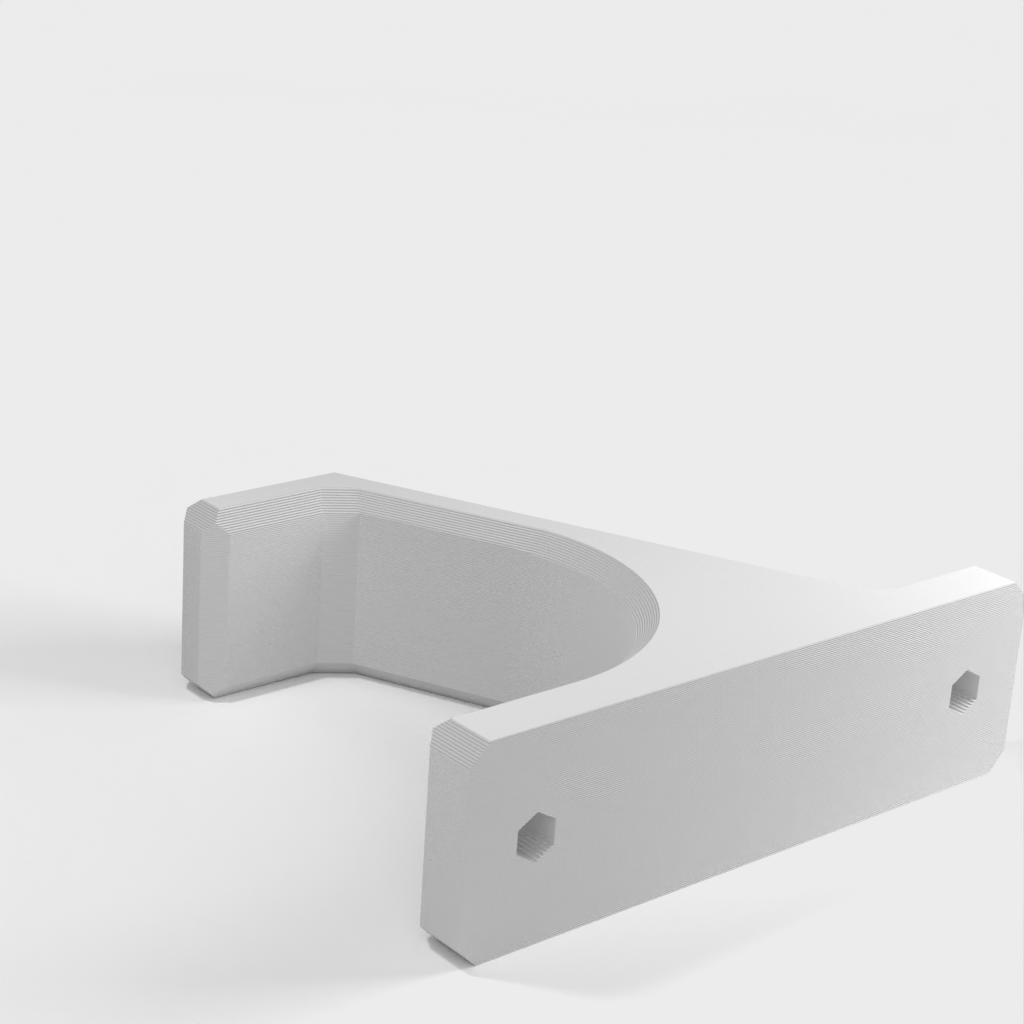 Colgador de casco de bicicleta MTB con un práctico diseño de gancho que se puede montar en la pared para un almacenamiento fácil y seguro de su casco. Los orificios hexagonales para los tornillos garantizan una producción fácil de imprimir y el modelo tiene un espacio empotrado para la cabeza del tornillo, para que no moleste al casco. La distancia entre los orificios de montaje es de 53 mm, lo que se adapta a tornillos de hasta 4 mm de diámetro y cabezas de 8 mm de diámetro y 2 mm de grosor.