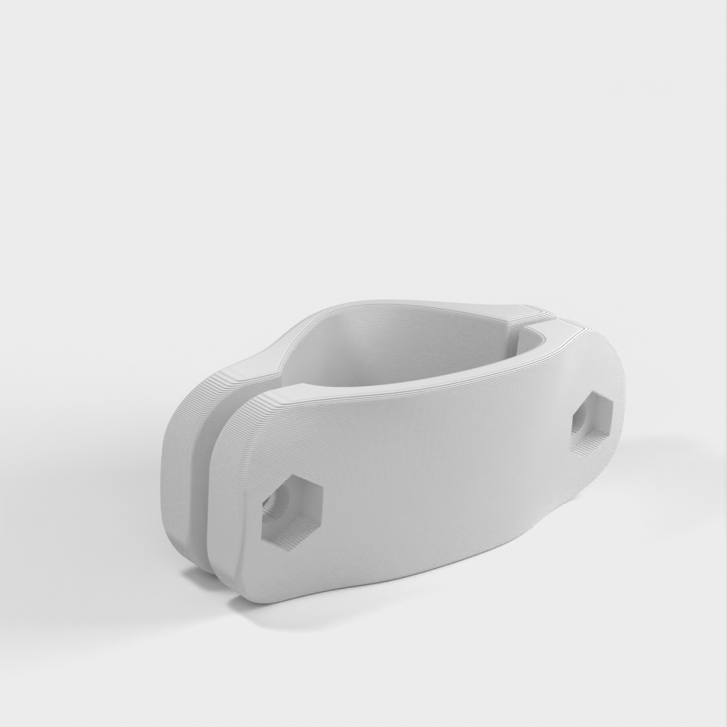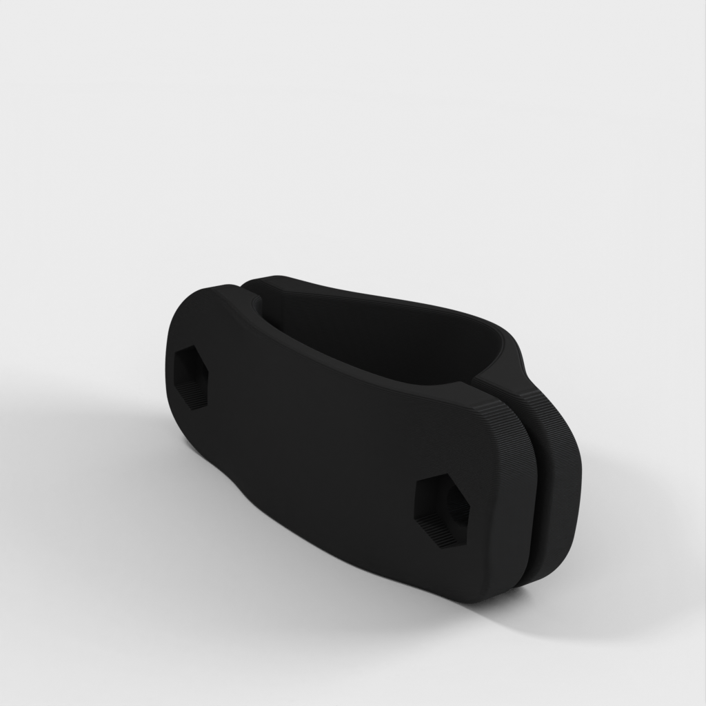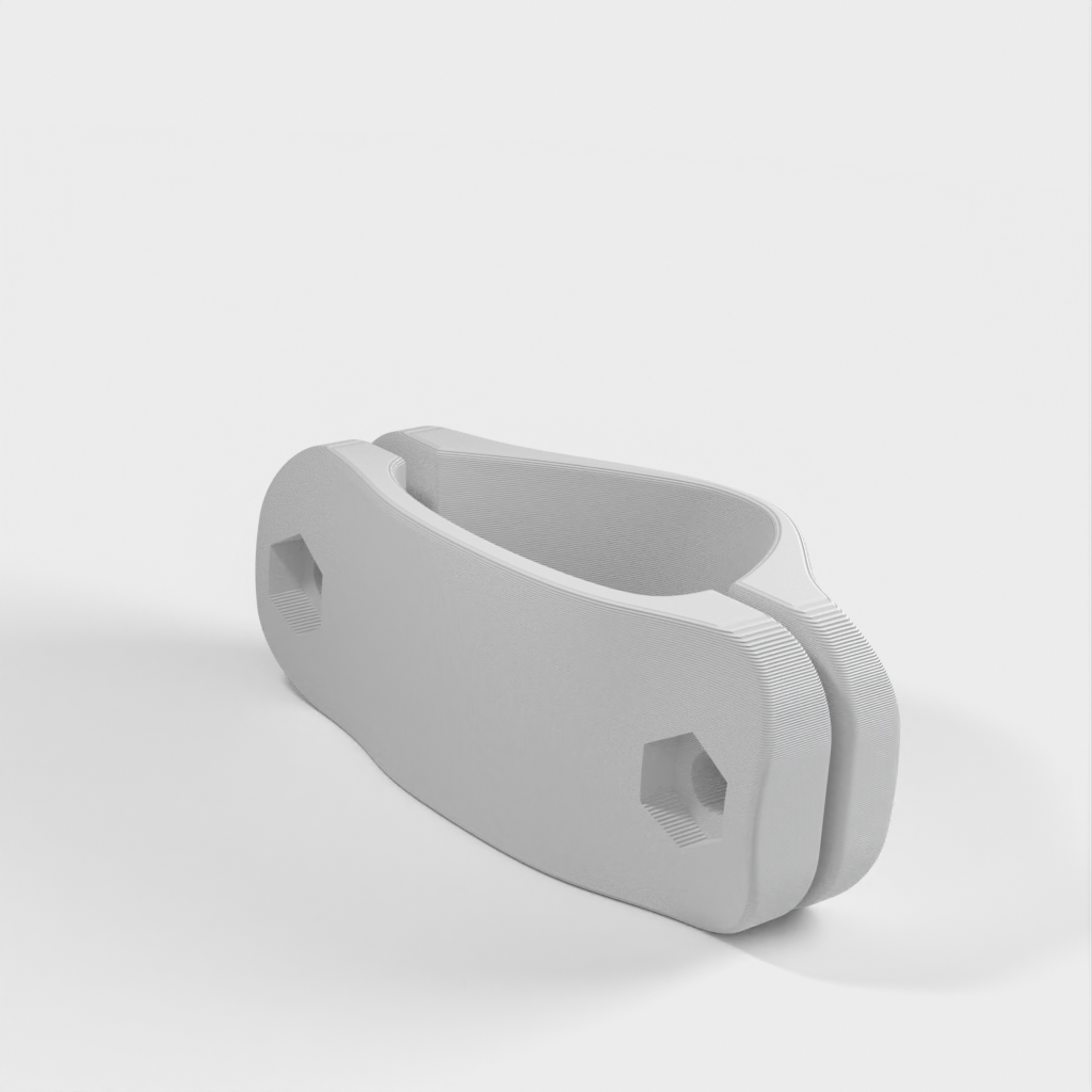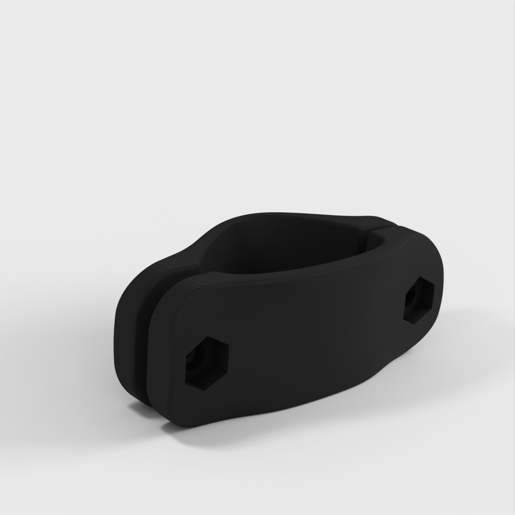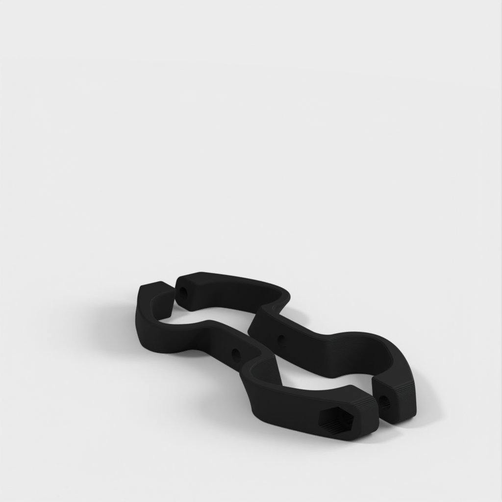 Abrazadera de soporte de guardabarros simple y confiable para montar un guardabarros delantero completo en una MTB de 29" con horquilla delantera de fibra de carbono. Diseñada para adaptarse a muchos tipos de horquillas de fibra de carbono y proporcionar un montaje estable y robusto.