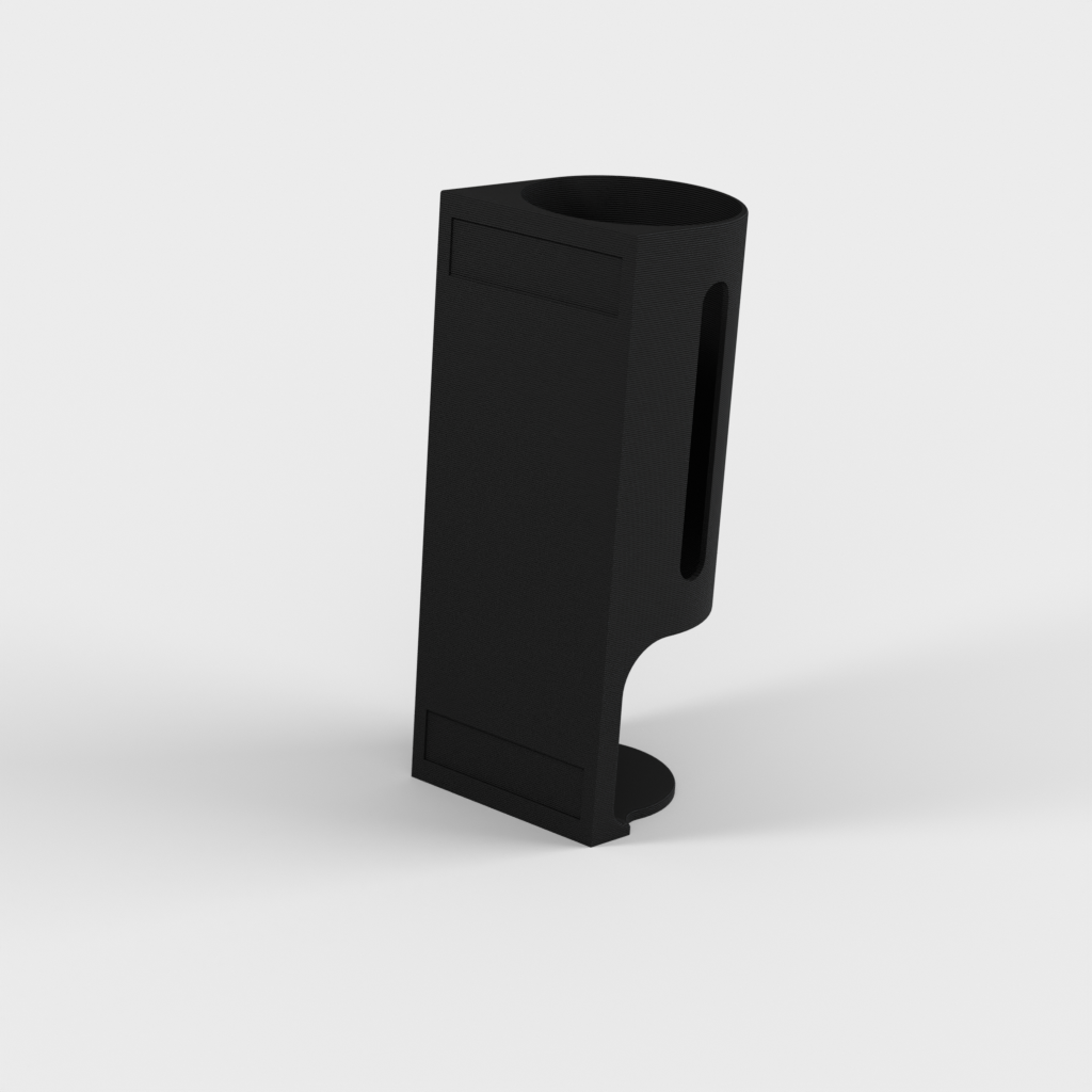 El soporte está diseñado para montarse en el lateral de tu cafetera Keurig, lo que hace que las K-Cups sean fácilmente accesibles y ahorra espacio en la encimera de la cocina. Tiene muescas en la parte posterior que son adecuadas para fijarlas con cinta adhesiva gris de doble cara 3M (no incluida), lo que garantiza un montaje estable y discreto.