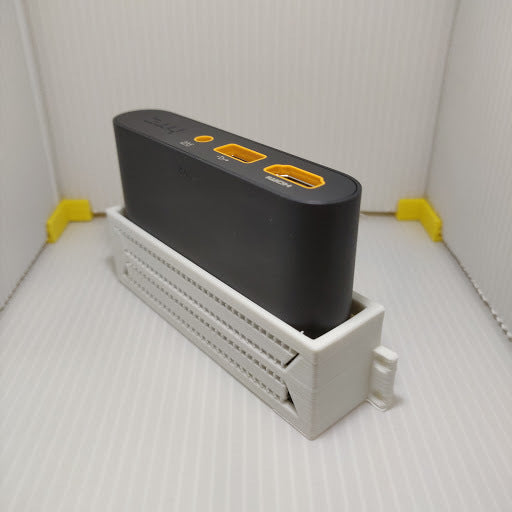 Soporte de pared simple para una HTC VIVE Link Box. El soporte proporciona acceso gratuito a todas las entradas.