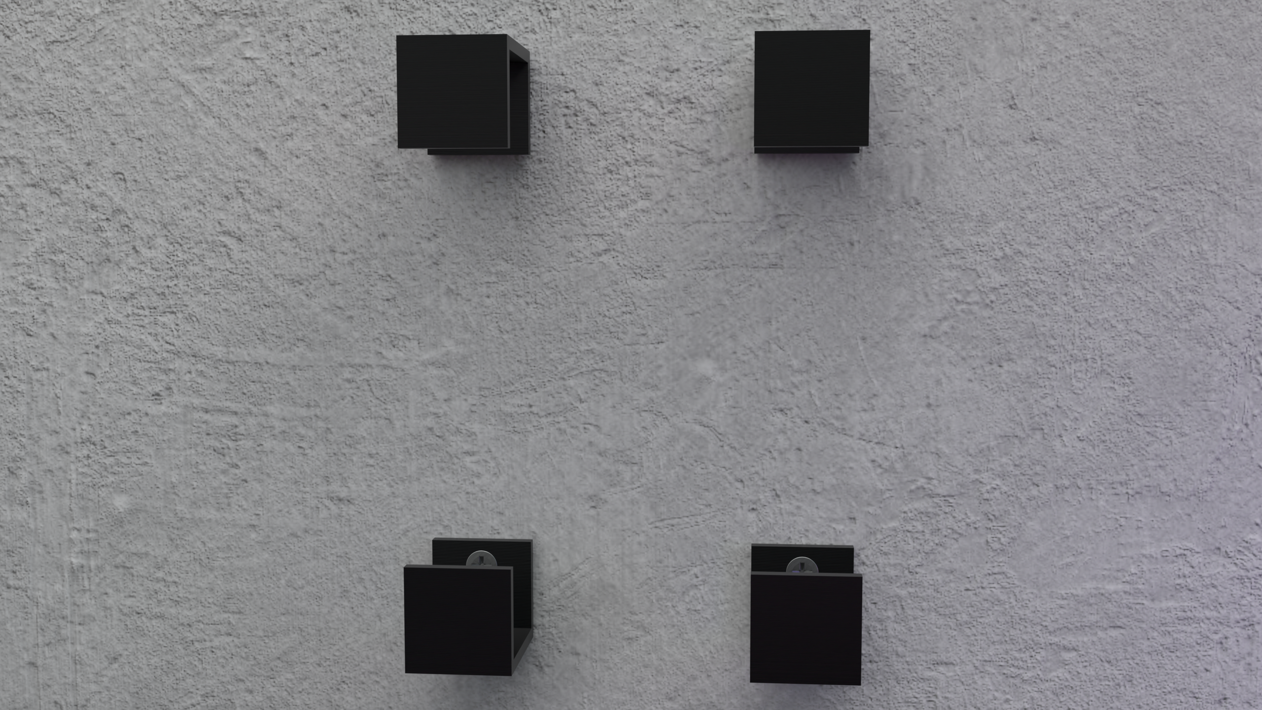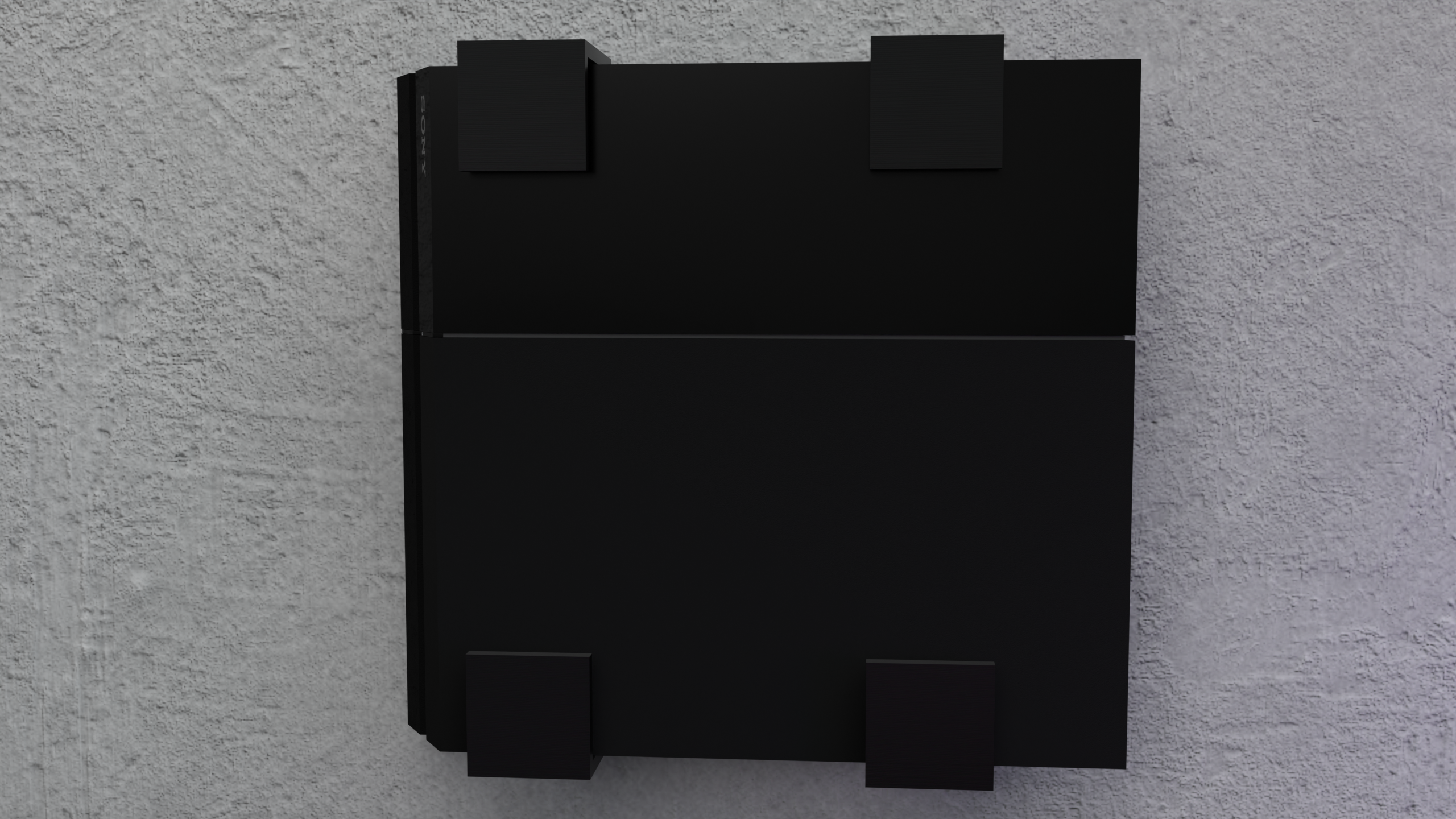 Las cuatro partes se montan fácilmente en la pared utilizando 4 tornillos. A continuación, la Playstation se puede montar y las 2 partes superiores se insertan y la Playstation se mantiene en su lugar.