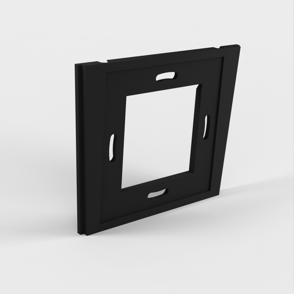 La placa de pared para cargadores está diseñada para cargadores que caben en una caja de conducto estándar de 60 mm. La otra placa de pared tiene orificios de 4 mm ubicados a 70 mm de distancia para tornillos avellanados. Para ambas placas, es importante que los tornillos no sobresalgan de la superficie, ya que de lo contrario entrarán en contacto y rayarán la tableta.