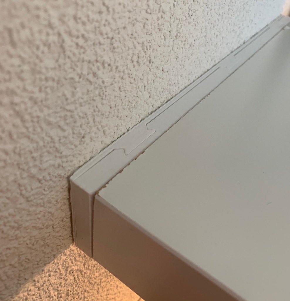 Versión mejorada del montaje en pared para el pequeño estante IKEA Lack. El montaje suministrado es inestable y difícil de montar sin dañar el estante Lack o la pared posterior. Este montaje consta de dos partes, una placa que se atornilla a la parte posterior del estante Lack, aquí se pueden usar los mismos tornillos que sujetan el montaje actual, y una placa para fijar a la pared, use el mismo tipo de tornillos y distancia entre tornillos que usaría para montar esto "normalmente".