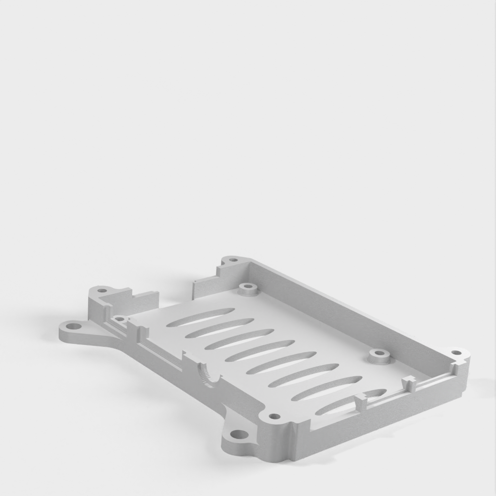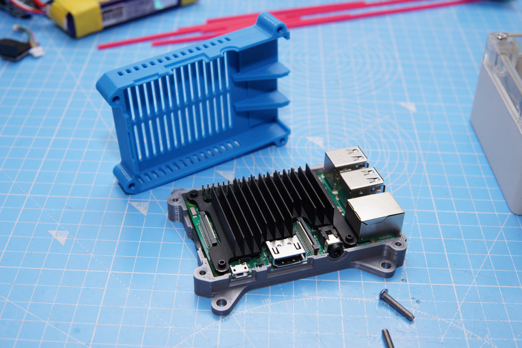 Reducerede afstandsstykker i bunden sikrer, at Raspberry Pi'en fastholder korrekt højde ved brug af M2 møtrikker til montering af kølelegemet.