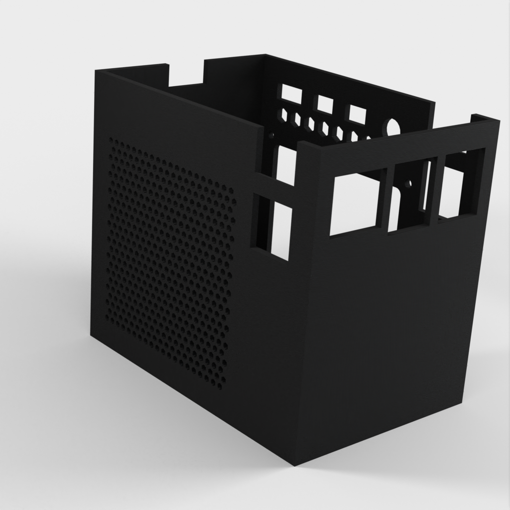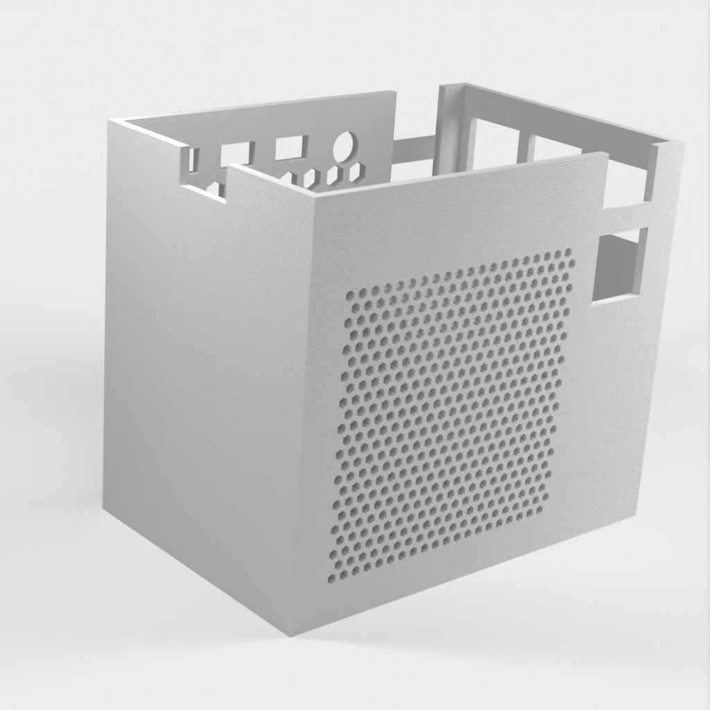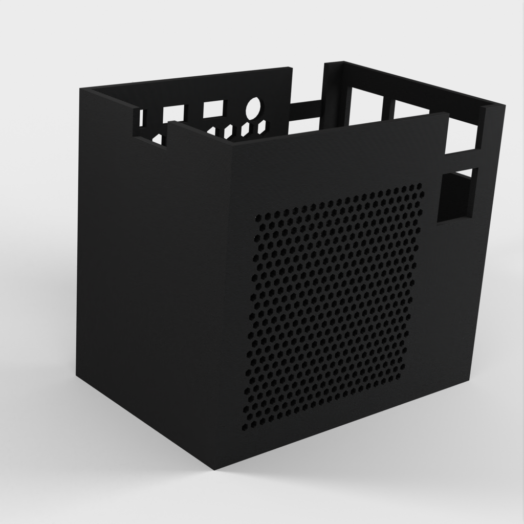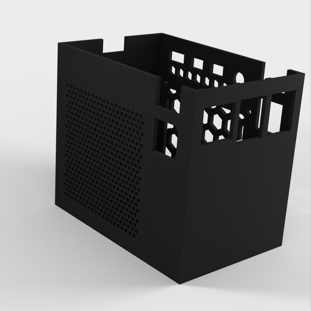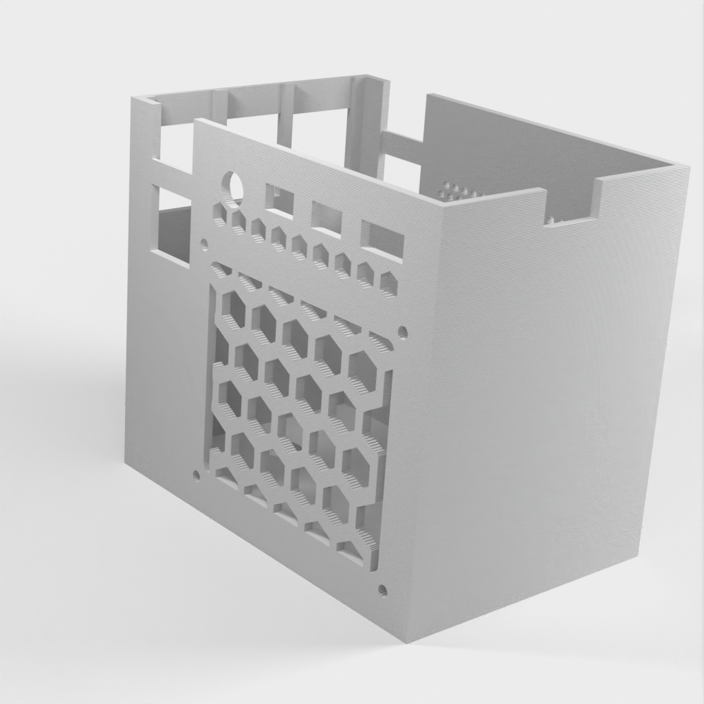 Esta es una carcasa minimalista para la Raspberry Pi 4 que se adapta a un refrigerador Ice Tower. El diseño superior de la carcasa tiene hexágonos más grandes en la parte posterior, por lo que es más fácil de imprimir. Después de la impresión, estos hexágonos se pueden quitar para dar a la caja un aspecto más agradable con la placa de acrílico que viene con el refrigerador Ice Tower montado en el lado de la caja. Los clips y la parte inferior de la carcasa se ajustan para encajar mejor y soportar múltiples diámetros de pies de goma.