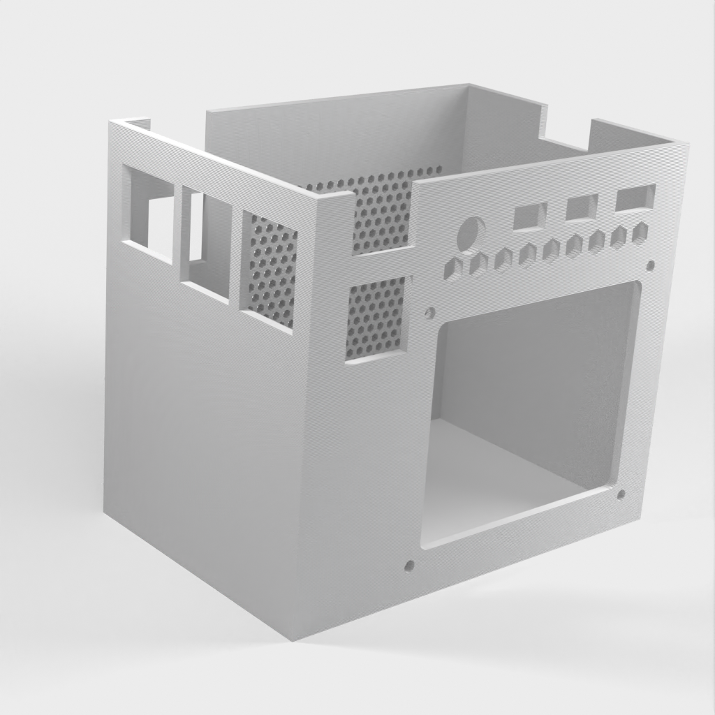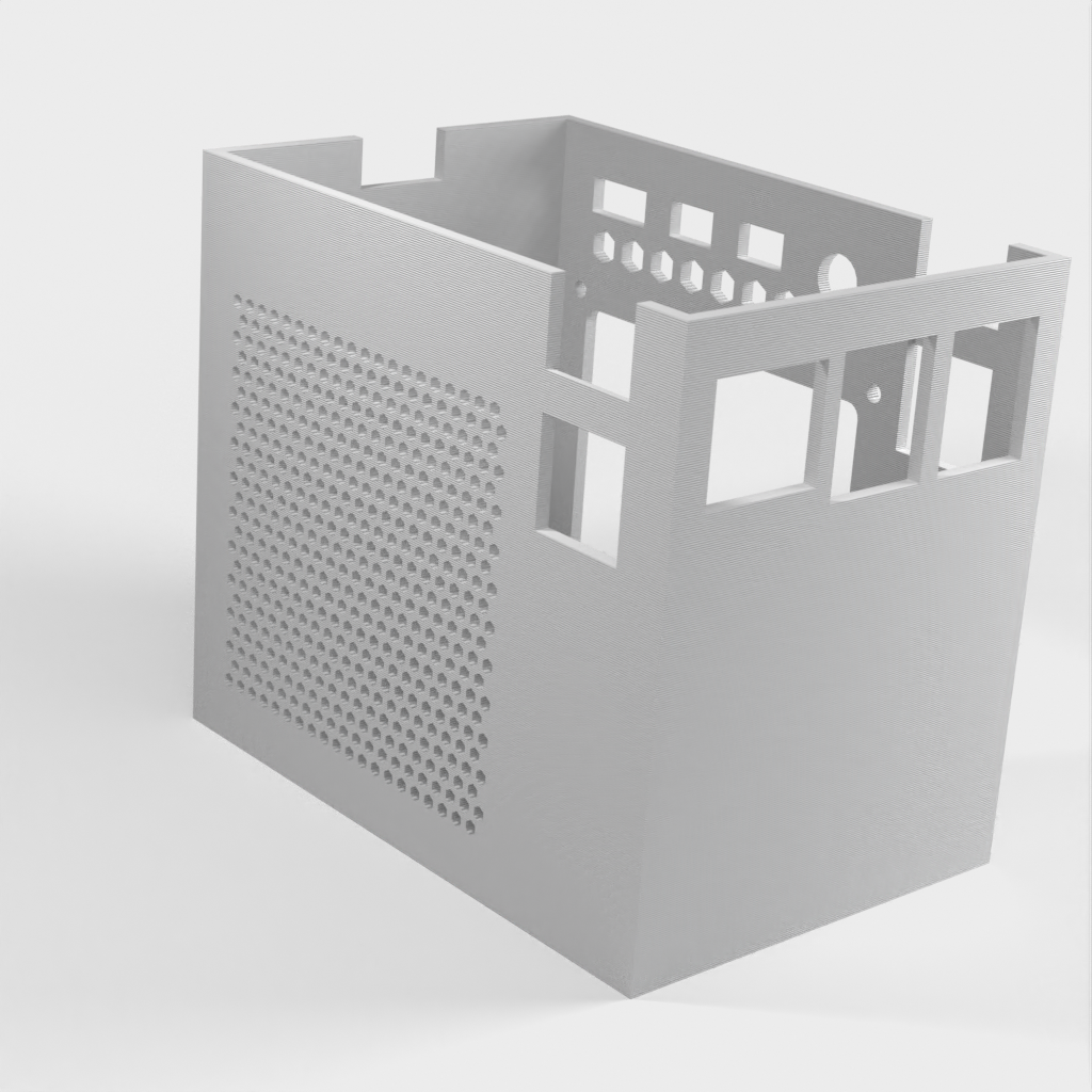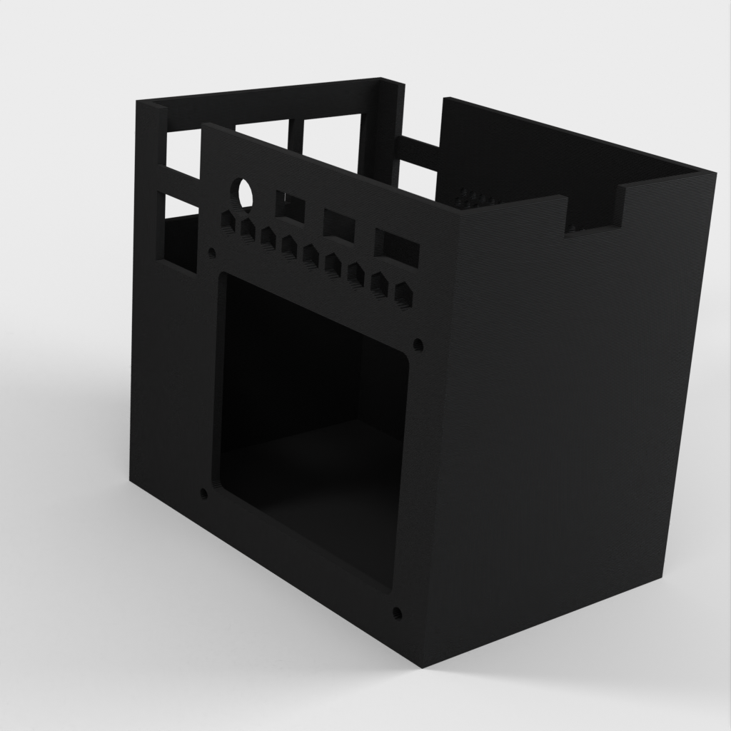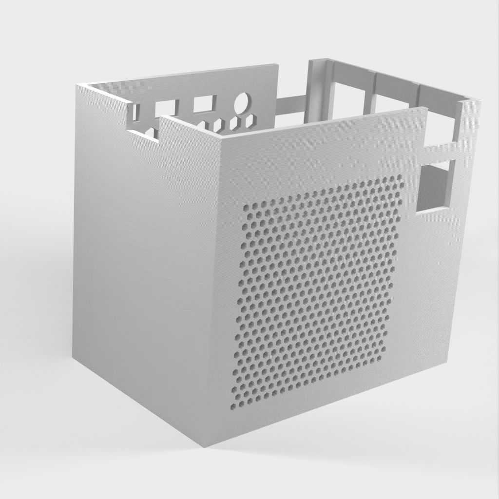 Esta es una carcasa minimalista para la Raspberry Pi 4 que se adapta a un refrigerador Ice Tower. El diseño superior de la carcasa tiene hexágonos más grandes en la parte posterior, por lo que es más fácil de imprimir. Después de la impresión, estos hexágonos se pueden quitar para dar a la caja un aspecto más agradable con la placa de acrílico que viene con el refrigerador Ice Tower montado en el lado de la caja. Los clips y la parte inferior de la carcasa se ajustan para encajar mejor y soportar múltiples diámetros de pies de goma.