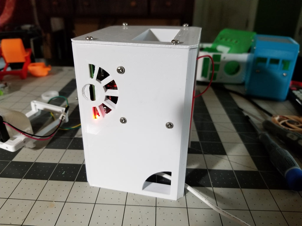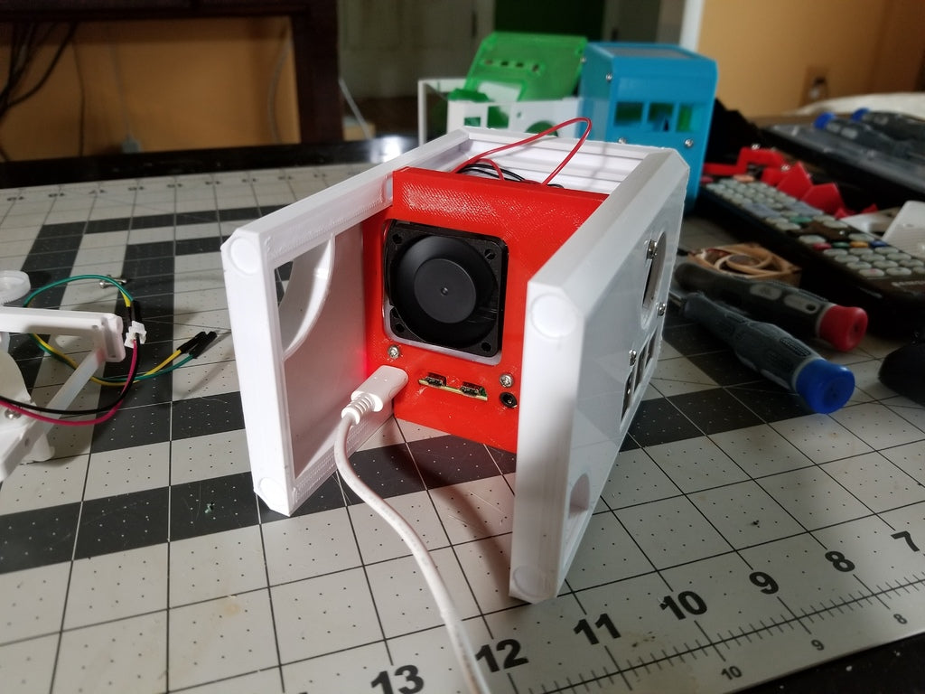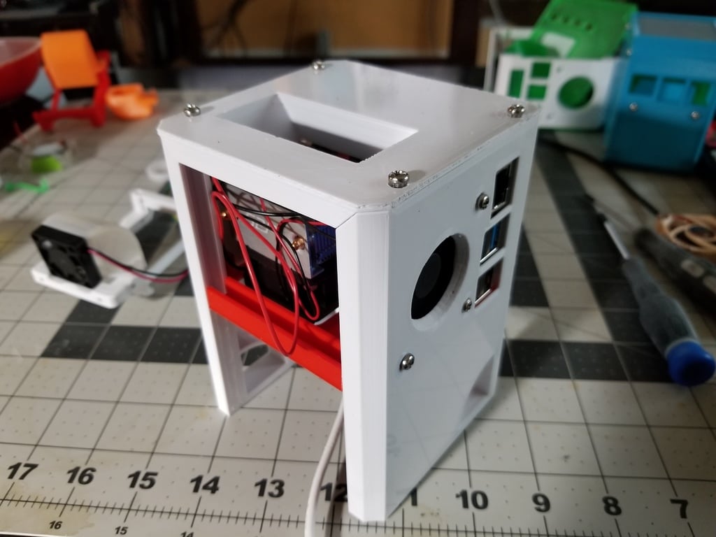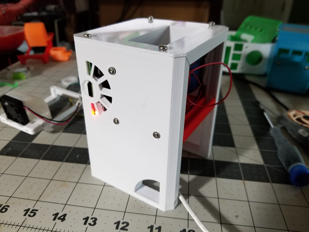 Estas son piezas de actualización para actualizar la Raspberry Pi 4+ Ice Tower Cooler Vertical Case para utilizar la nueva configuración de doble ventilador. Este mod da a la caja vertical toda la potencia de refrigeración de la caja Mini Desktop. El mod requiere la reimpresión de la mayor parte de la caja. El lado SD obtiene un puerto de escape y el lado USB obtiene un embudo de entrada. Hay una parte inferior alternativa opcional que puede alojar un ventilador de 40x20mm en el disipador y una parte superior alternativa que elimina el conducto de la versión original y sustituye el puerto de escape por una rejilla. Esto libera espacio alrededor de los pines GPIO y hace que sea más fácil conectar varios ventiladores.