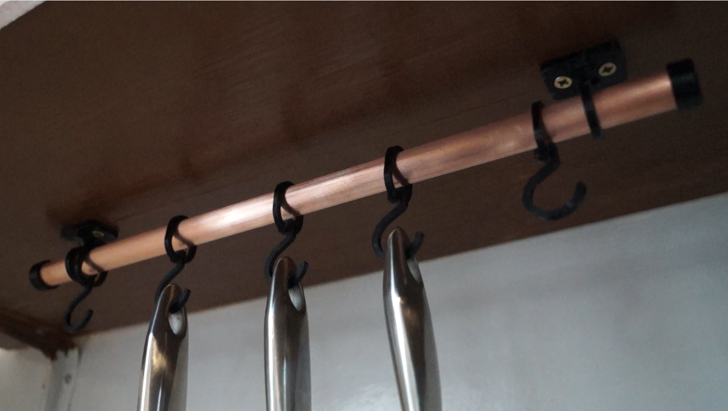 Este práctico colgador de cocina está diseñado para brindarle una solución inteligente para almacenar sus utensilios de cocina. Con este colgador para sartenes y colgador para ollas, puede organizar fácilmente sus ollas y sartenes, lo que libera valioso espacio en gabinetes y encimeras en su cocina. El colgador está construido para encajar alrededor de una tubería de cobre de 16 mm o 1/2", lo que garantiza un montaje estable y robusto. Es la solución ideal para ahorrar espacio para mantener su cocina ordenada y todos sus utensilios de cocina fácilmente accesibles.