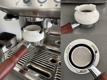 Este embudo de café de 54 mm es un accesorio práctico diseñado para las máquinas de espresso Sage/Breville, específicamente para cestas de portafiltro de 54 mm que se encuentran en modelos como Barista Express, Barista Touch y Barista Pro.