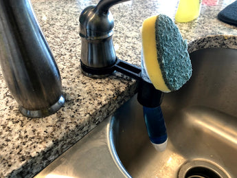 - Mantiene el cepillo para fregar al alcance
