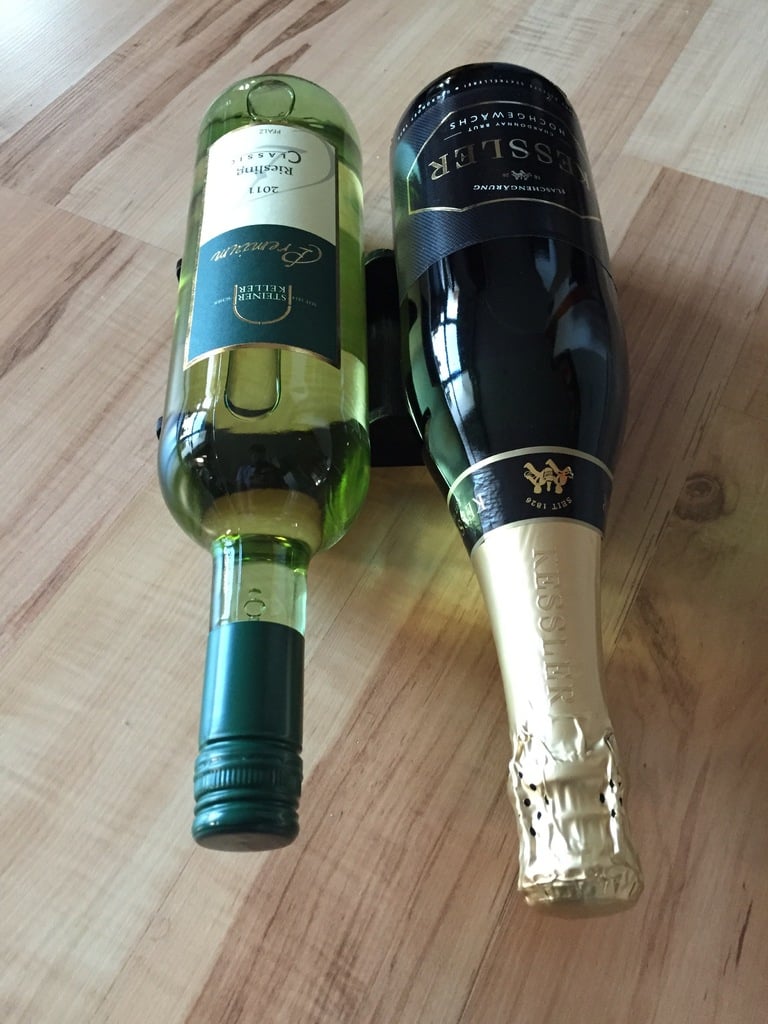 Este práctico soporte ofrece una solución eficaz para guardar sus botellas de vino y champán. Está diseñado para albergar hasta tres botellas apiladas una encima de otra, lo que maximiza el uso de su espacio, ya sea en un frigorífico o en un estante. El soporte es compatible con botellas con un diámetro de 70 a 90 mm, lo que garantiza que la mayoría de las botellas de vino y champán estándar encajen de forma segura y estable.
