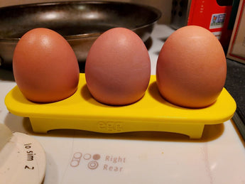El práctico huevero está diseñado para almacenar de forma segura hasta tres huevos en la encimera de su cocina. Ayuda a mantener los huevos en su lugar de forma estable para que no rueden ni se caigan mientras prepara sus comidas. Esto facilita el acceso a los huevos cuando los necesita, por ejemplo, cuando necesitan alcanzar la temperatura ambiente. El soporte ofrece una solución de almacenamiento organizada y estable que encaja discretamente en la mayoría de los entornos de cocina.
