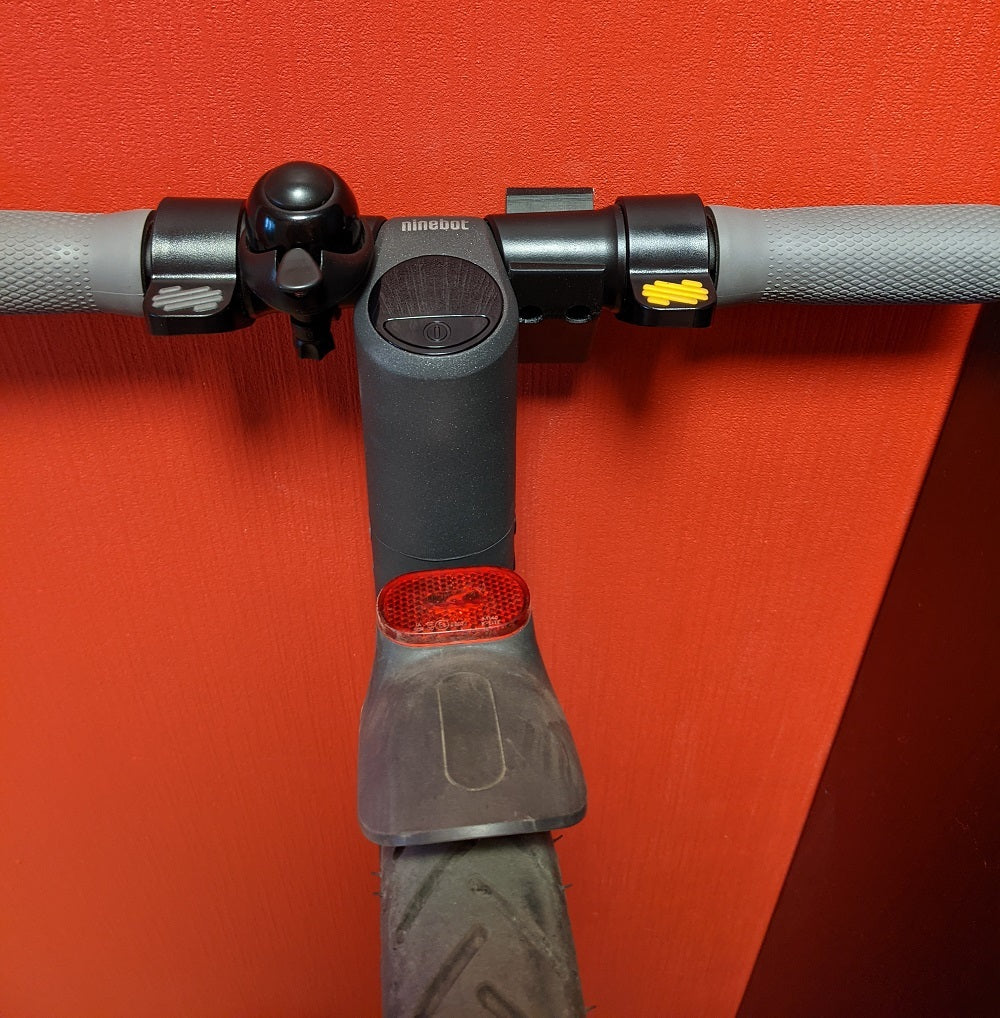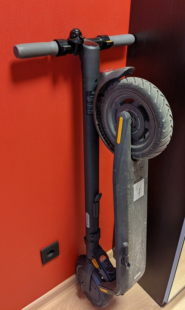 Soporte de pared simple impreso en 3D para Ninebot e25 para que pueda colocarse contra la pared y ocupar el menor espacio posible.