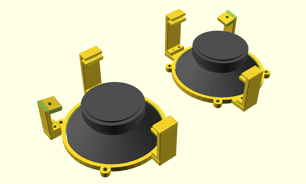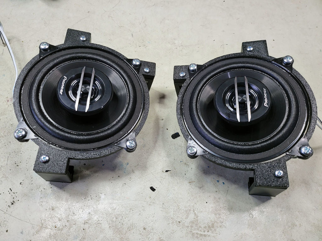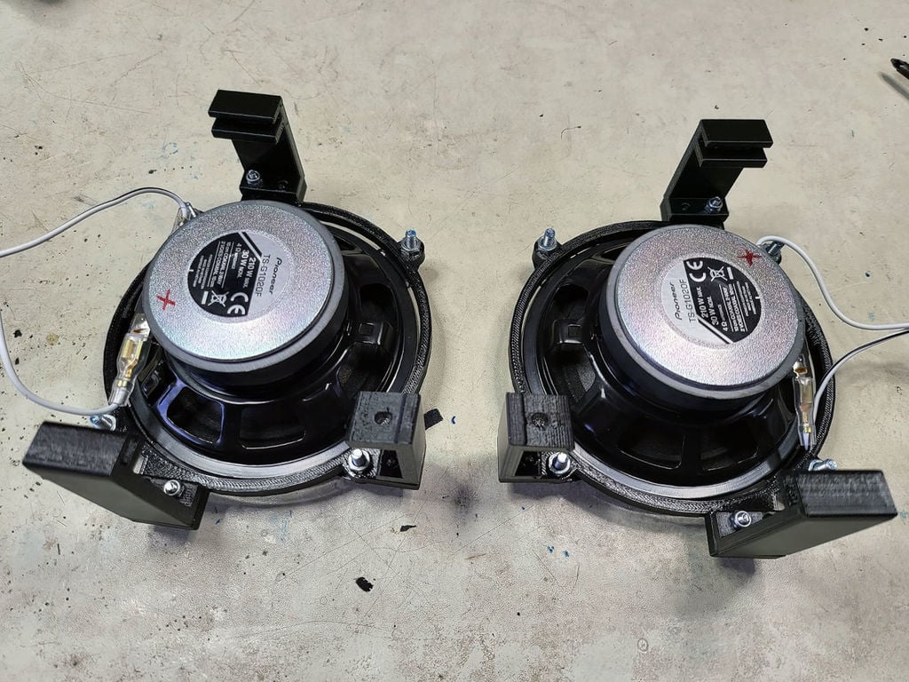 Renault Twizy Speaker Mounts es un conjunto de soportes para altavoces diseñados para el Renault Twizy. Los soportes están hechos específicamente para encajar perfectamente con los altavoces Pioneer TS-G1020F de 4 pulgadas. Están situados en la posición original del soporte del coche en el techo.