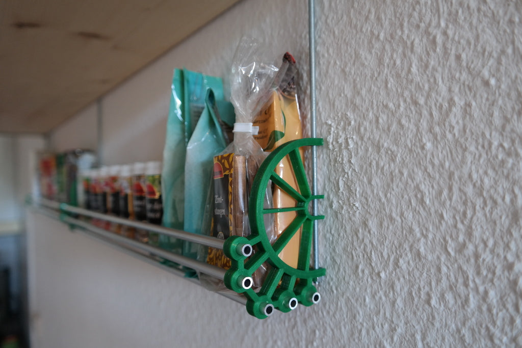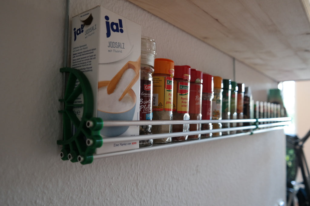El estante para especias está construido con robustos tubos de aluminio M6 que garantizan una estructura estable y duradera. Las varillas roscadas y tuercas M4 integradas contribuyen a una mayor resistencia, manteniendo sus especias seguras en su lugar. Las piezas de conexión impresas y especialmente diseñadas hacen que la configuración sea sencilla y contribuyen a una expresión limpia y moderna que encaja en la mayoría de las cocinas.