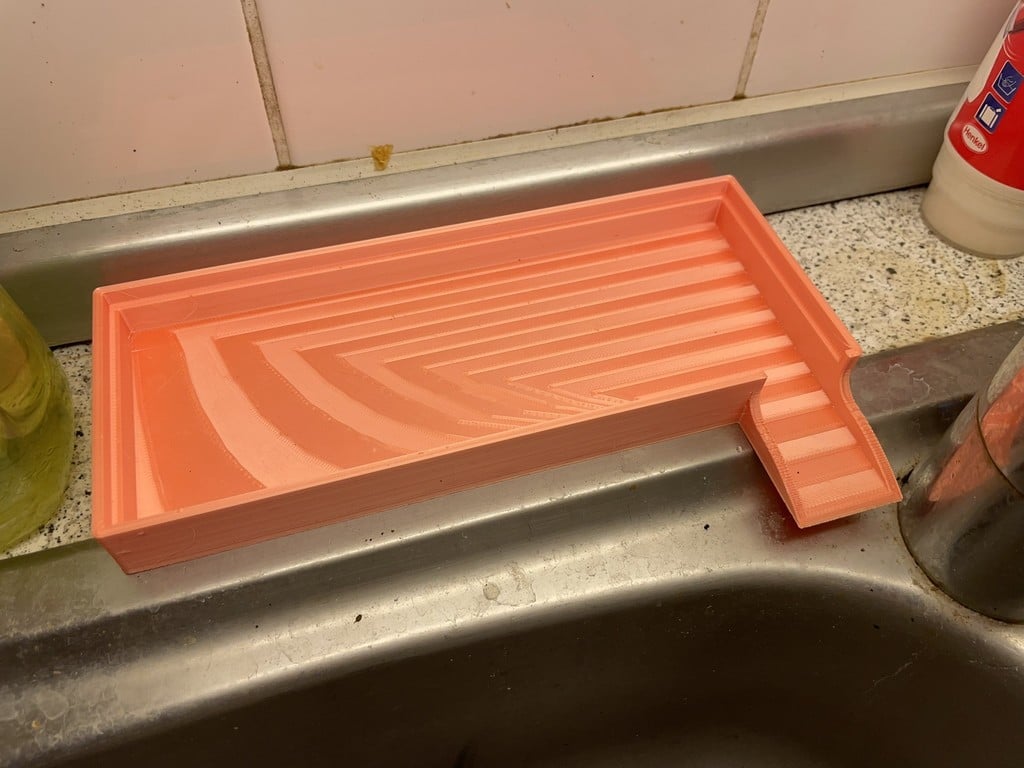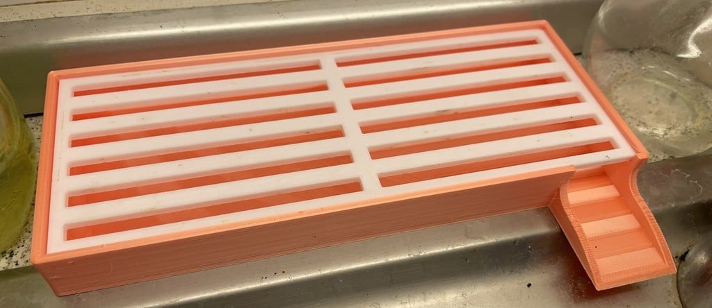 Las dimensiones del organizador están bien consideradas para encajar en la mayoría de los fregaderos de cocina estándar. La base mide 8 cm x 20 cm x 2 cm e incluye un desagüe de 3,5 cm de largo y 3 cm de ancho. El propio estante mide 7,4 cm x 19,4 cm y el portabotellas tiene una altura de 13,8 cm, lo que ofrece mucho espacio incluso para botellas más altas.
