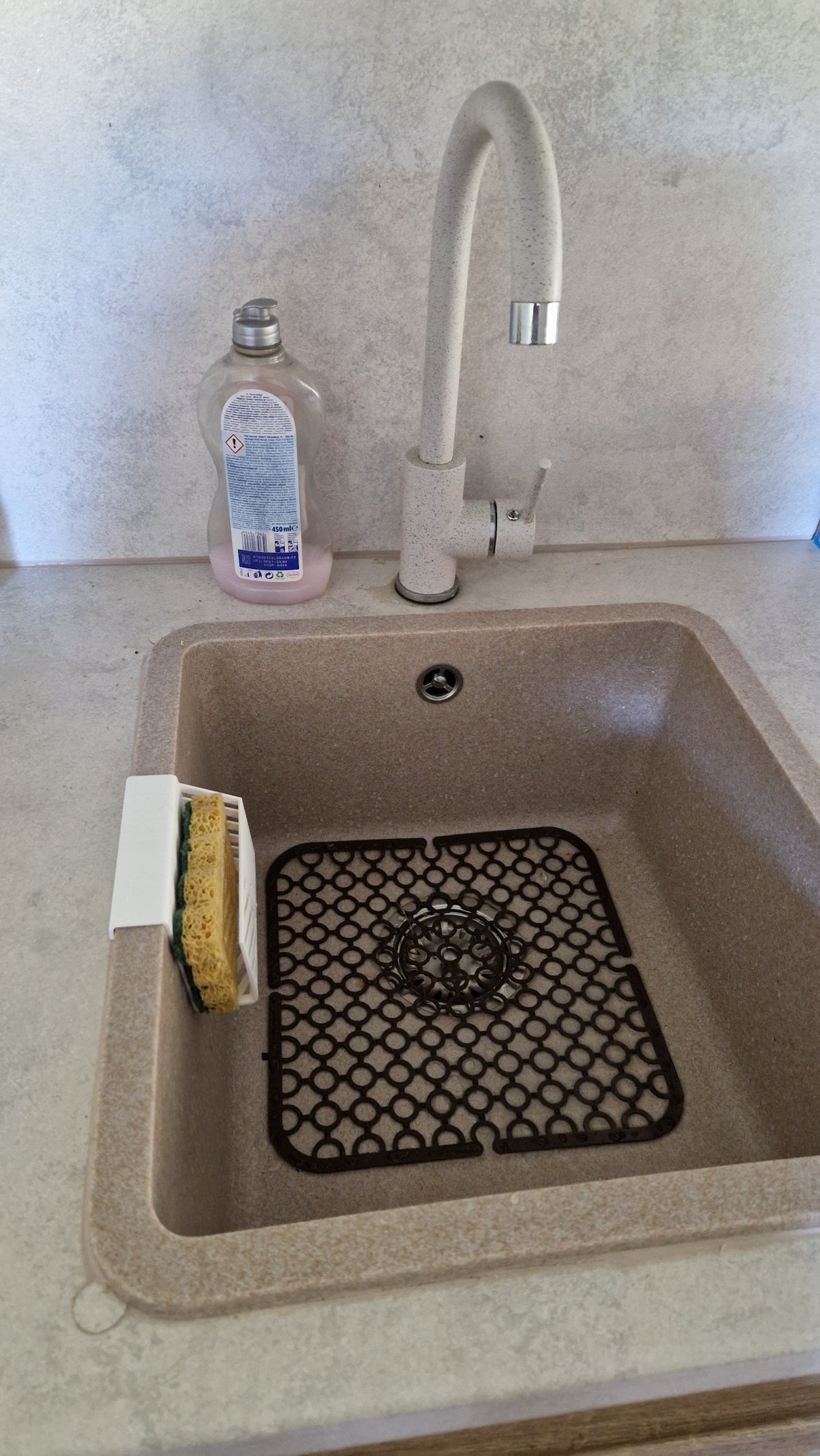 El soporte para esponjas está diseñado específicamente para adaptarse al borde de los fregaderos de cerámica o piedra con un ancho de 25 mm. Sus orificios de drenaje inteligentes con patrón Chevron garantizan un drenaje eficaz, de modo que su esponja permanece seca y fresca.