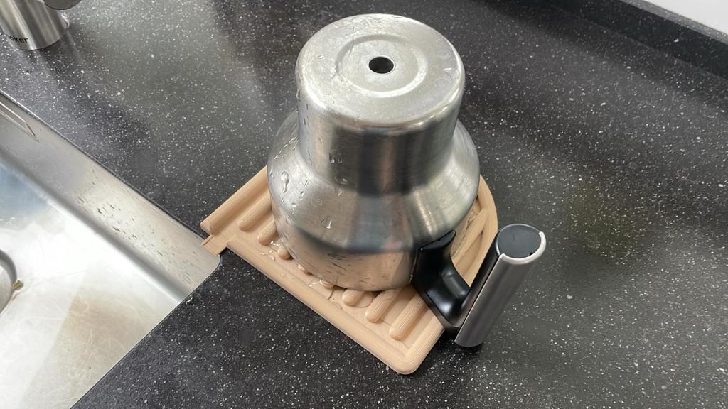 Fabricada con material TPU flexible, la bandeja de goteo garantiza que las gotas de agua permanezcan en la superficie gracias a las propiedades del material y a la alta tensión superficial. La superficie plana maximiza la eficiencia de la recolección y está diseñada para permitir que cantidades mayores de líquido se desvíen gradualmente, por ejemplo, hacia el fregadero de la cocina. Esto proporciona una solución sin esfuerzo para minimizar el desperdicio y mantener un área ordenada, lo que la convierte en un valioso accesorio Quick Mill.