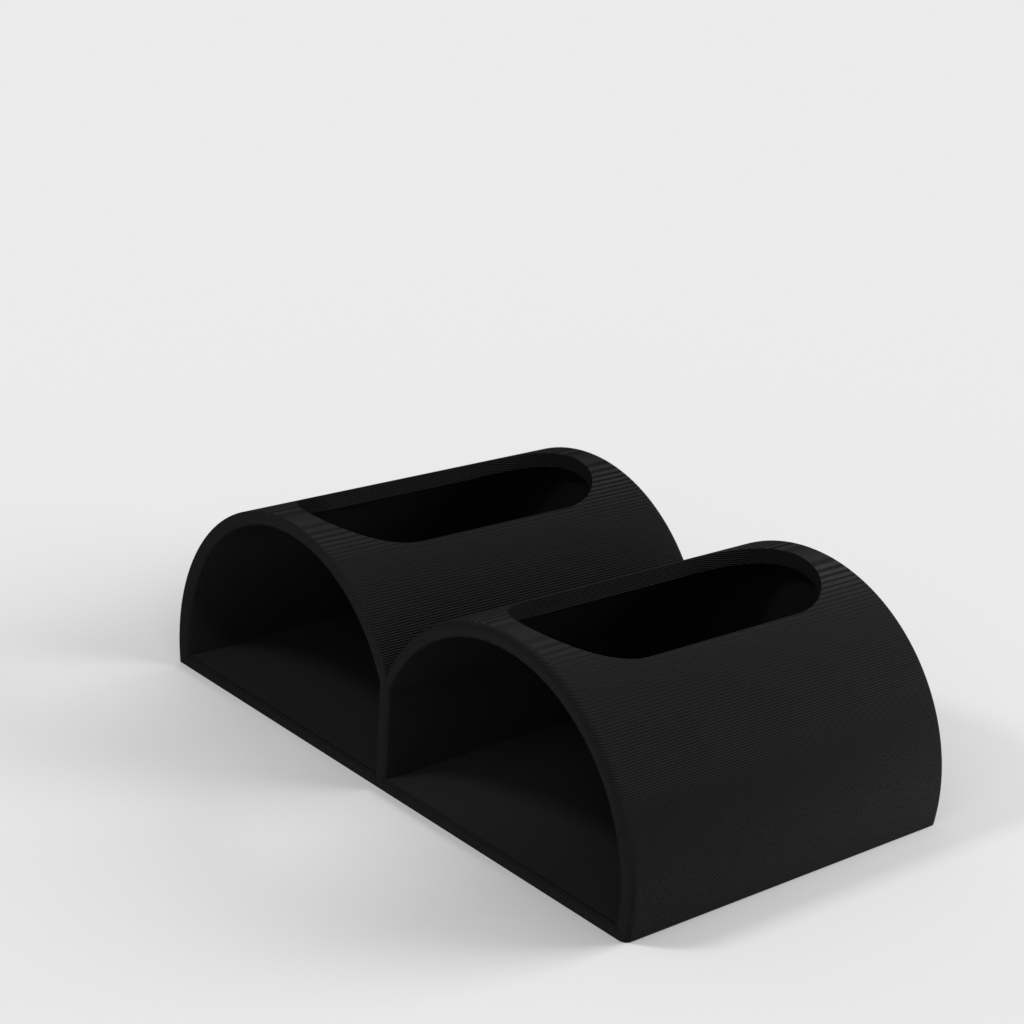 Este práctico soporte de pared está diseñado para proporcionar un lugar fijo y organizado para sus controles remotos Roku TV y Vizio soundbar. Con esta solución, evitará el desorden y la frustración de buscar sus controles remotos, ya que siempre estarán fácilmente disponibles. El soporte se monta discretamente en el lateral de una mesa auxiliar o una superficie similar, normalmente con cinta adhesiva de doble cara, lo que garantiza que sus controles remotos permanezcan al alcance, pero fuera de la vista. Esto contribuye a un entorno de vida ordenado y organizado, donde la funcionalidad se une a la estética.