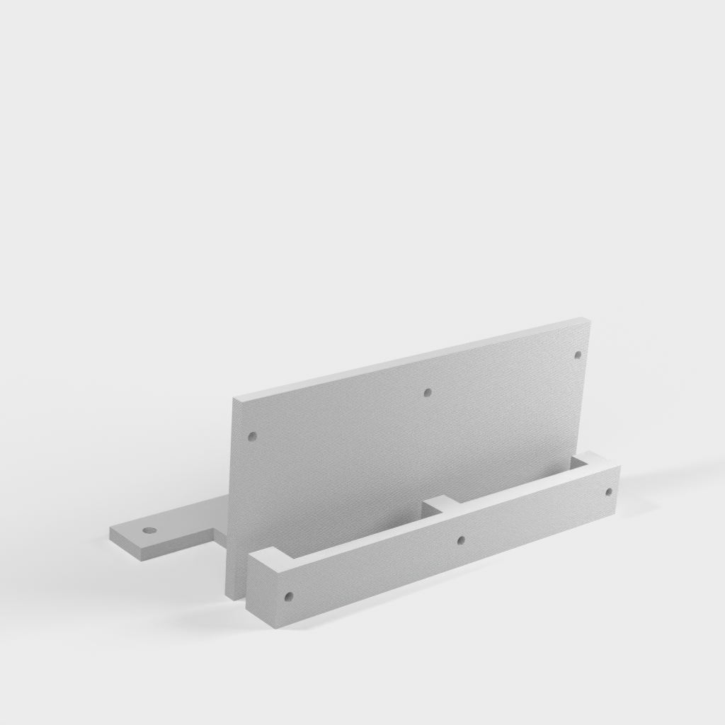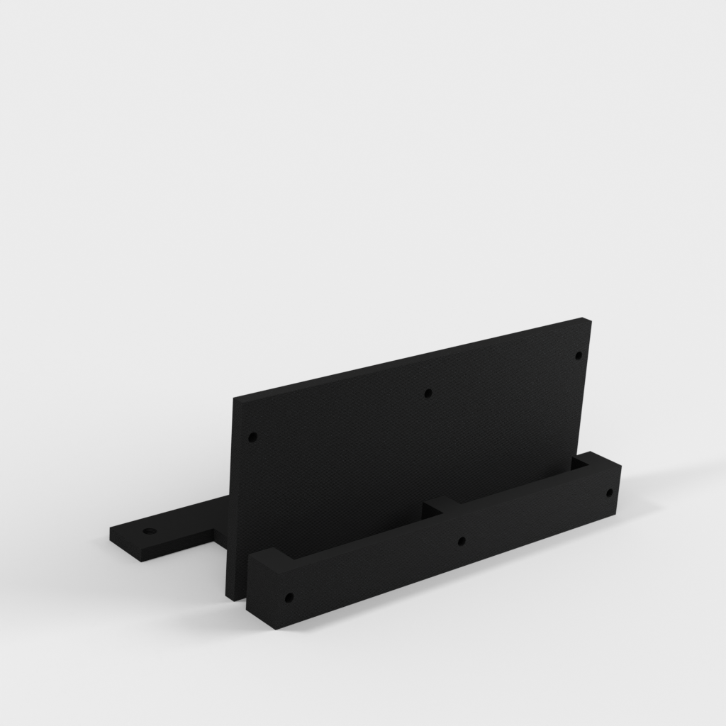El estante se monta fácilmente en los pernos VESA superiores de 8 pulgadas (aprox. 20,3 cm) de su soporte de TV existente. Con una abrazadera integrada, el estante garantiza que sus dispositivos, como un reproductor multimedia compacto o un disco duro externo, se mantengan seguros y estables en su lugar detrás de la pantalla. Este diseño contribuye a una expresión ordenada y minimalista en la habitación.