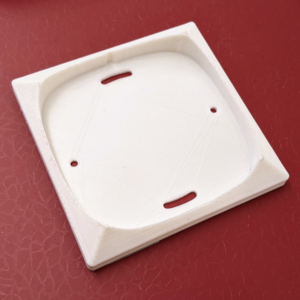 Montaje en pared para el mando a distancia inteligente IKEA STYRBAR. Dado que el mando a distancia sustituye básicamente al interruptor de la luz normal, este montaje permite colocarlo en la posición del interruptor de la luz. El modelo tiene orificios para el montaje en una caja de empotrar estándar.