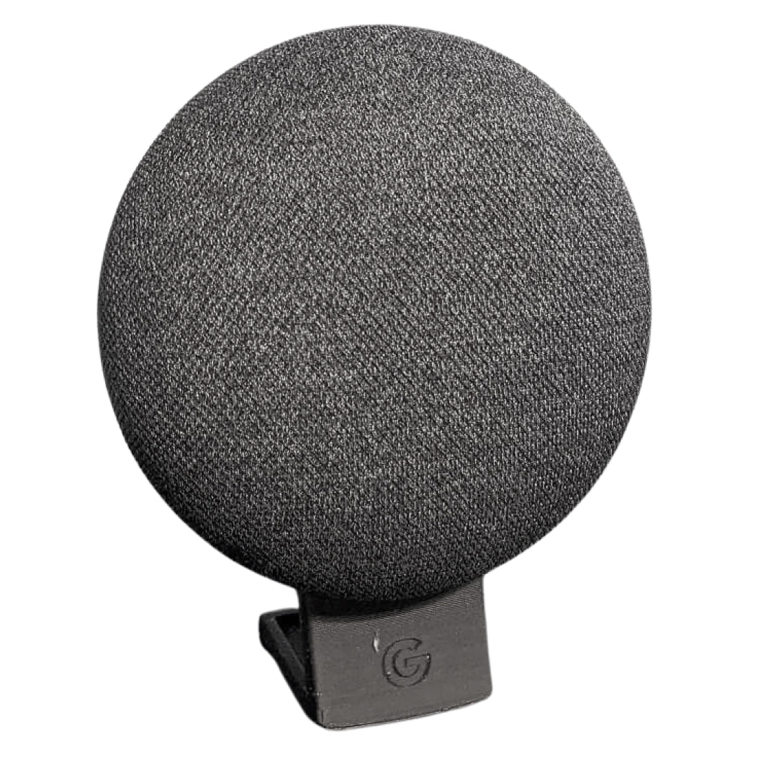 Un soporte minimalista que coloca tu Google Nest Mini de segunda generación en una posición vertical sobre un escritorio o un estante.