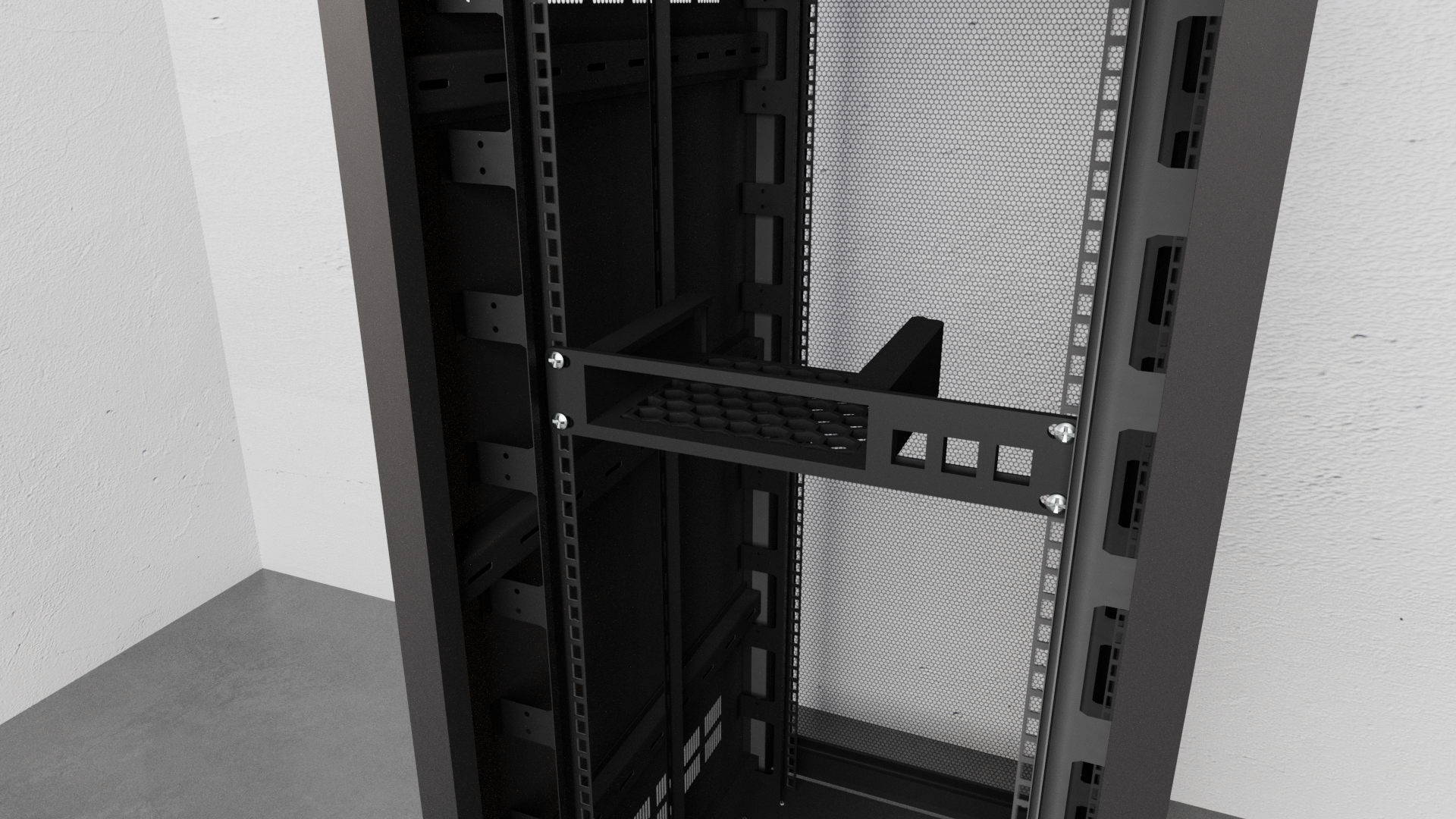 - Asegura una integración robusta y organizada del equipo de red en el armario de rack.