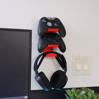 Este soporte de pared organiza tu zona de juegos manteniendo dos mandos (compatibles con Xbox y PS5) y tus auriculares alejados del escritorio. Crea una exhibición ordenada de tu equipo, al mismo tiempo que lo mantiene fácilmente accesible. Una solución de almacenamiento práctica que maximiza el espacio.