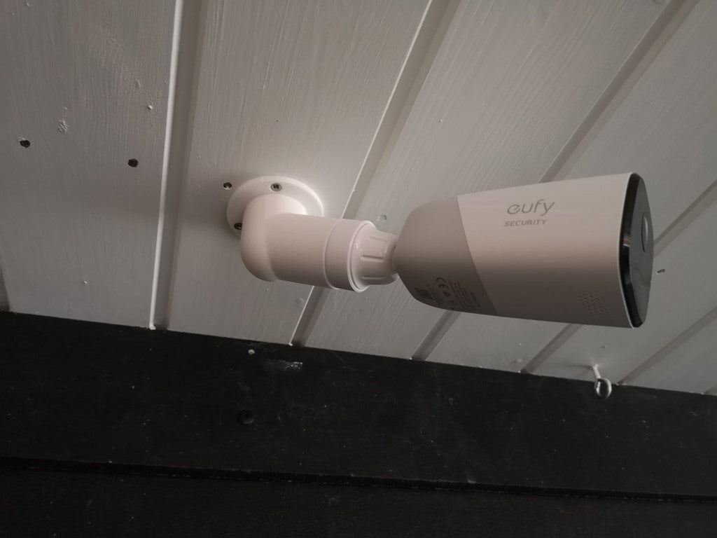 Soporte para cámara de seguridad Arlo/Eufy con un ángulo para colgar debajo del techo. Esta robusta solución angular encaja perfectamente con el soporte de tornillo incluido para Eufy y Arlo.