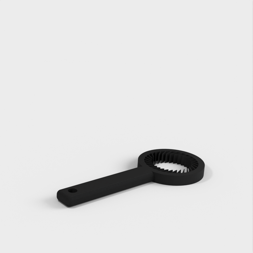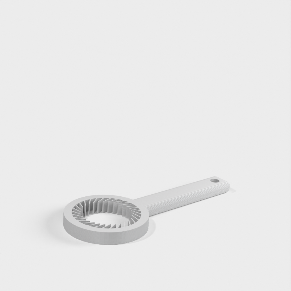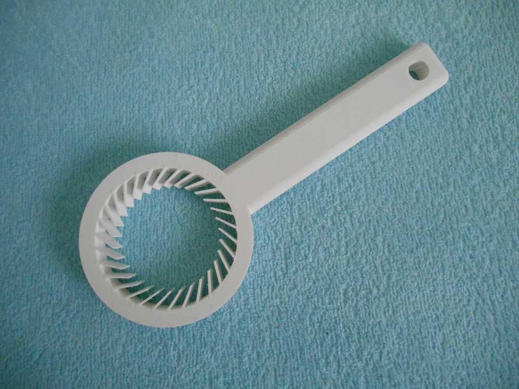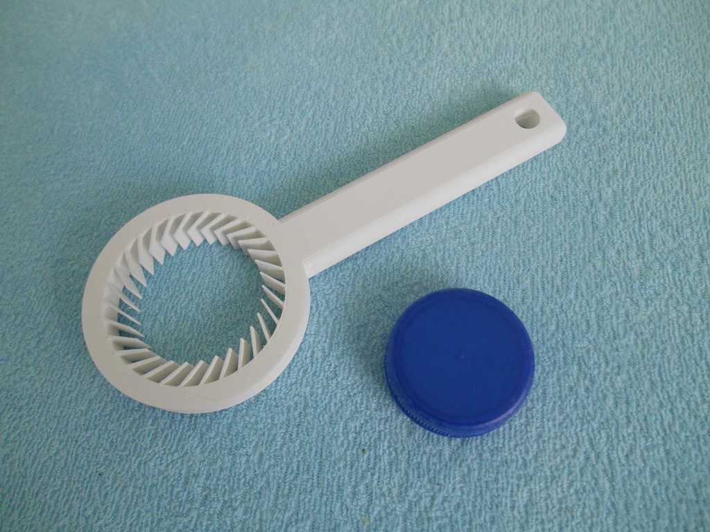Este es un abridor de botellas de leche diseñado para abrir botellas de leche fácilmente. Es una herramienta útil en la cocina que hace que cocinar sea más fácil. Este producto está impreso en 3D y puede ser una ayuda en tu trabajo diario en la cocina.
