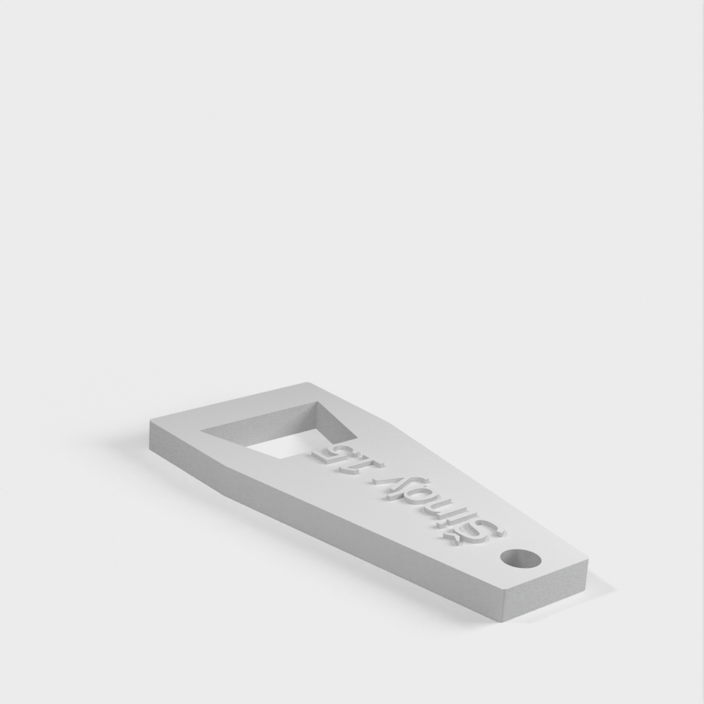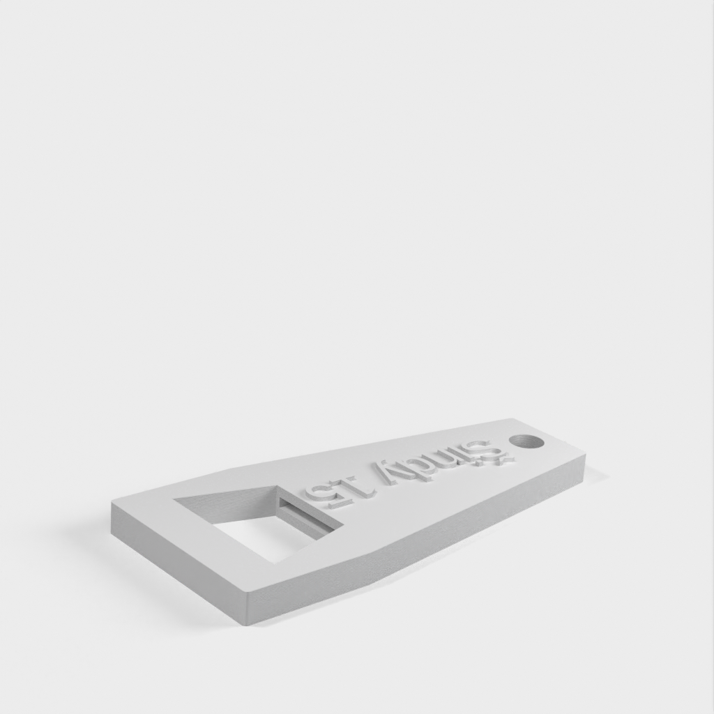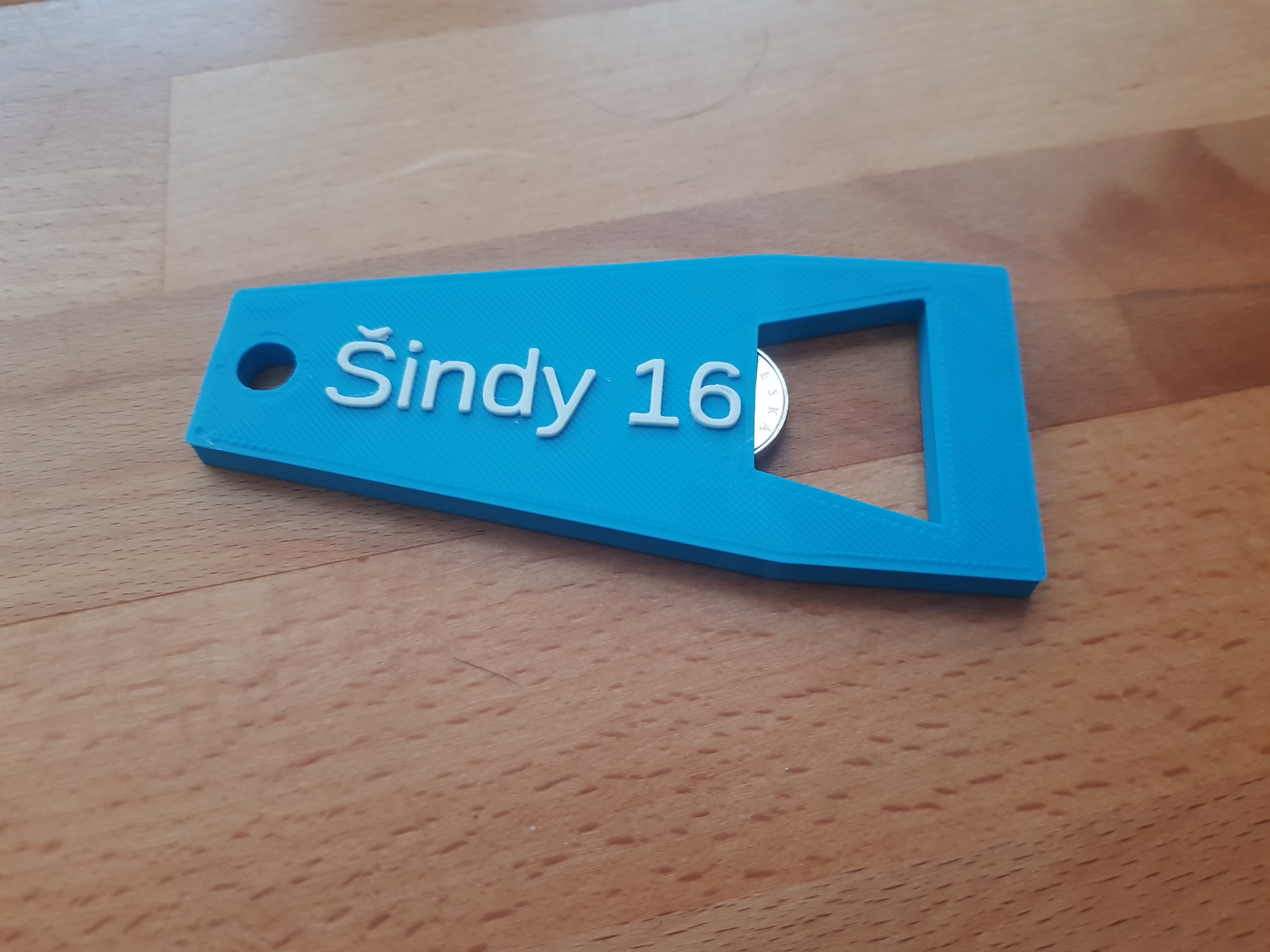 Abridor de botellas inspirado en Prusa, que utiliza una moneda. Recuerda configurar la pausa de impresión para poder insertar la moneda, y opcionalmente también configurar un cambio de filamento para imprimir la decoración en otro color. Para cambiar el texto de la decoración y obtener la última versión, consulte el repositorio con un código OpenSCAD.