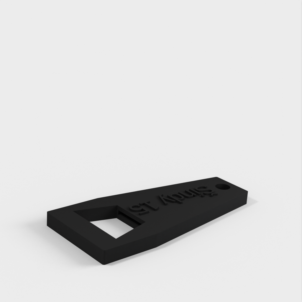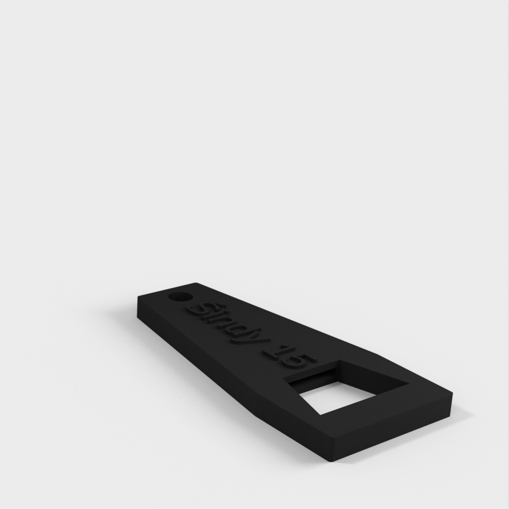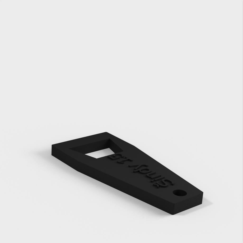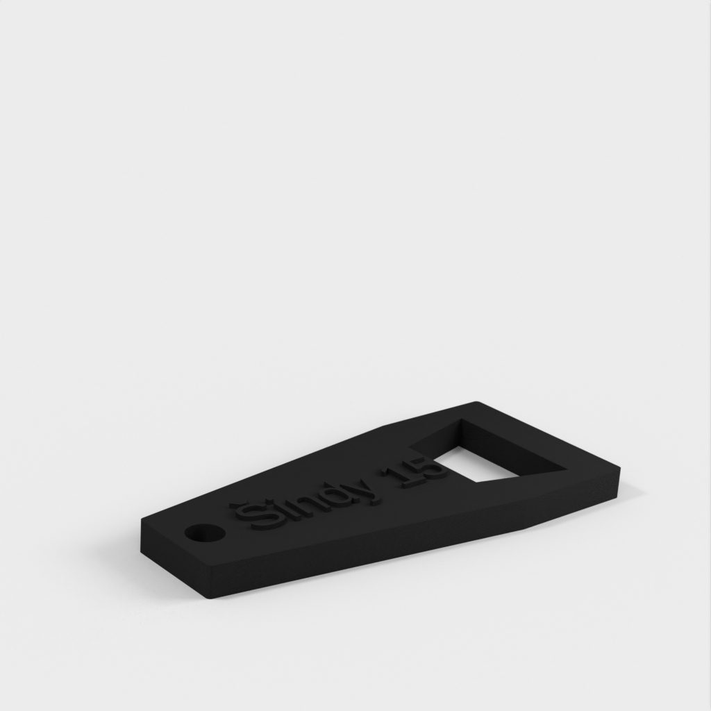 Abridor de botellas inspirado en Prusa, que utiliza una moneda. Recuerda configurar la pausa de impresión para poder insertar la moneda, y opcionalmente también configurar un cambio de filamento para imprimir la decoración en otro color. Para cambiar el texto de la decoración y obtener la última versión, consulte el repositorio con un código OpenSCAD.