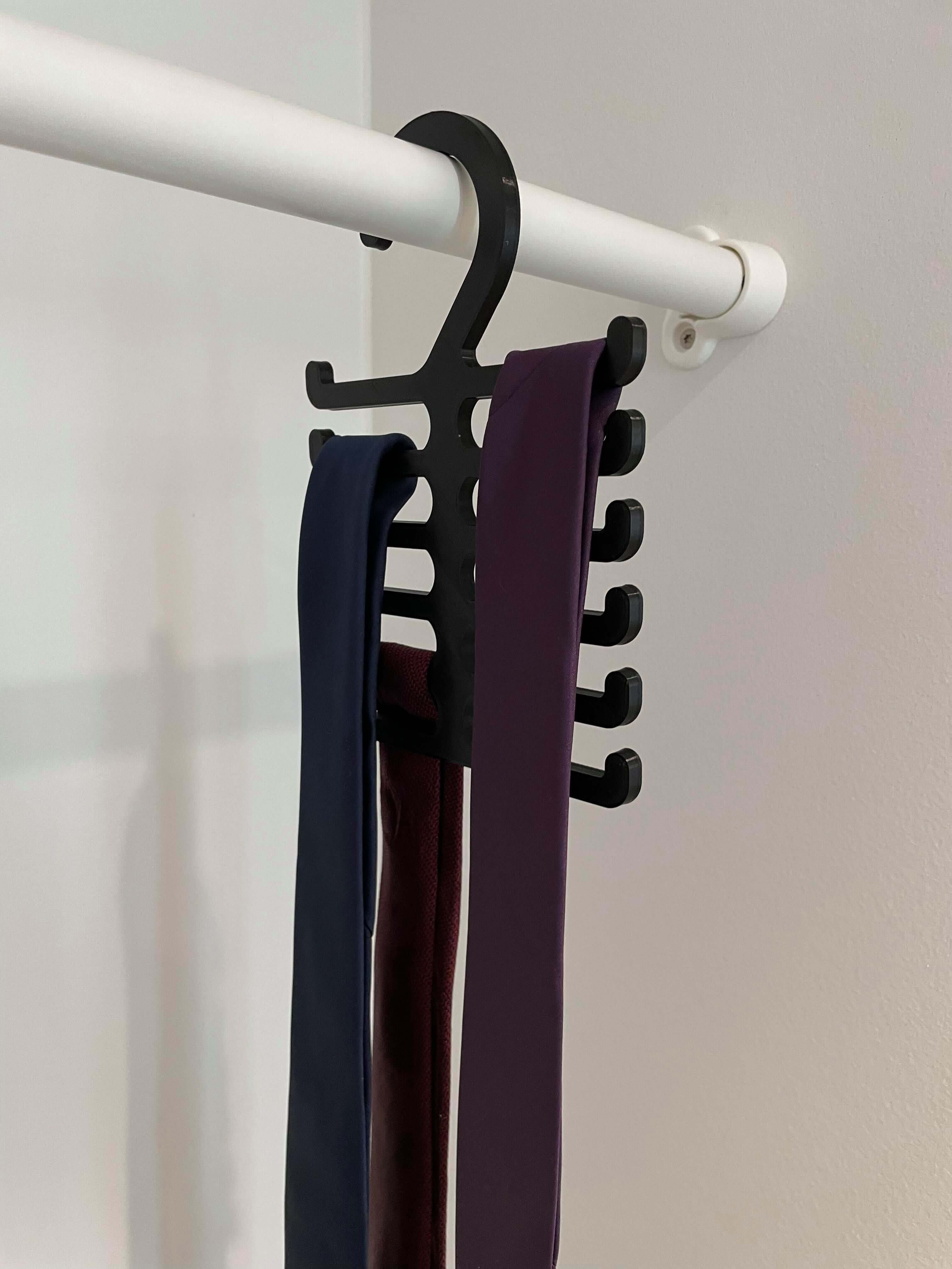 Percha para corbatas, para que pueda guardar fácilmente todas sus corbatas (y cinturones) en el mínimo espacio de la percha.